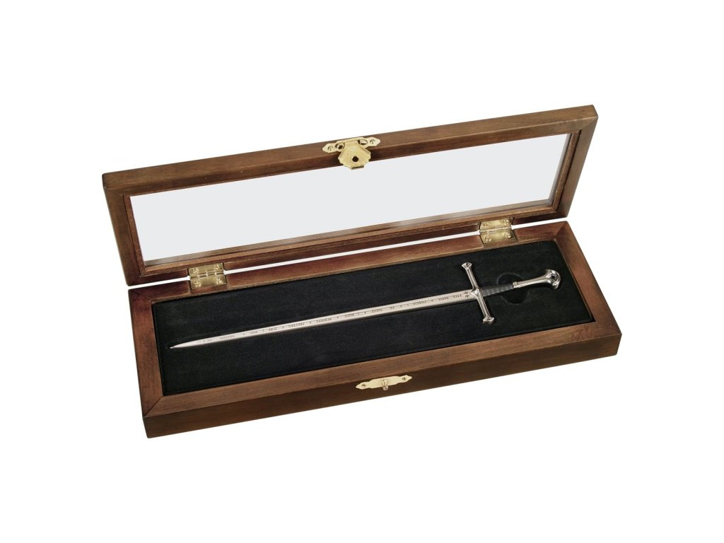 Zmenšená replika Andurilu, meče krále Elessara, Aragorna, z filmového zpracování Tolkienova Pána prstenů. Tento meč byl znovu zkut z úlomků Elendilova Narsilu. Nůž je dlouhý 22 cm, balen je v dřevěné krabičce o rozměrech 25 x 8 x 3 cm, velice věrná replika, která potěší všechny fanoušky Hobita.