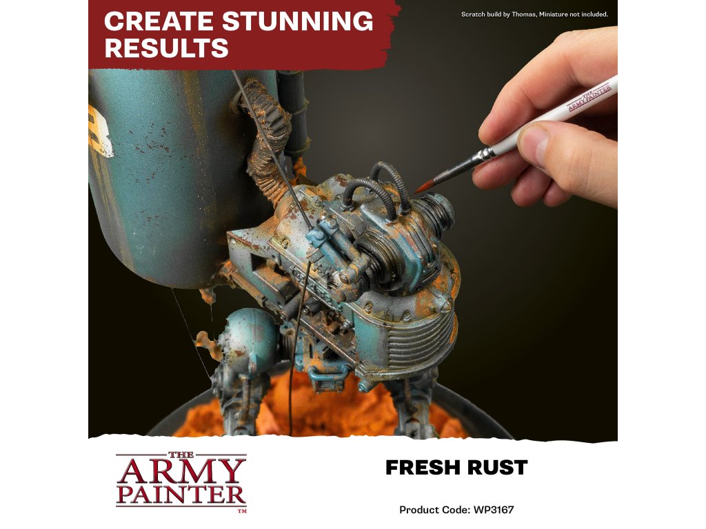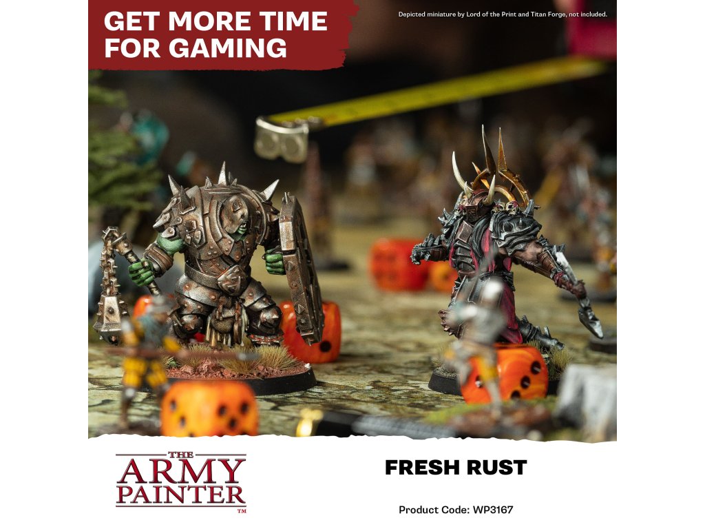 Akrylová farba Fanatic Effects - Fresh Rust od výrobcu Army Painter. Effect farby sú vhodné predovšetkým pre napodobnenie napr. zaschnutej krvi, hrdze alebo slizu, ktoré posunú vaše figúrky a miniatúry na ďalšiu úroveň. Farby Fanatic ponúkajú bezkonkurenčné krytie, intenzívnu pigmentáciu, hladkú aplikáciu a zároveň sa neuveriteľne jednoducho používajú. Farbu bohatú na pigmenty je možné riediť až do extrémnych úrovní pre pokročilých technikov alebo nanášať priamo na miniatúru pre ľahké pokrytie pri zachovaní rozptylu pigmentu. Objem každej liekovky je 18 ml a obsahuje dve miešacie guličky.