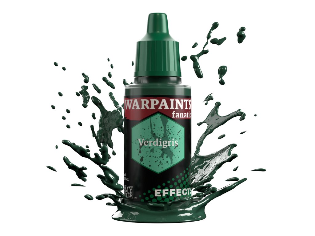 Akrylová farba Fanatic Effects - Verdigris od výrobcu Army Painter. Effect farby sú vhodné predovšetkým pre napodobnenie napr. zaschnutej krvi, hrdze alebo slizu, ktoré posunú vaše figúrky a miniatúry na ďalšiu úroveň. Farby Fanatic ponúkajú bezkonkurenčné krytie, intenzívnu pigmentáciu, hladkú aplikáciu a zároveň sa neuveriteľne jednoducho používajú. Farbu bohatú na pigmenty je možné riediť až do extrémnych úrovní pre pokročilých technikov alebo nanášať priamo na miniatúru pre ľahké pokrytie pri zachovaní rozptylu pigmentu. Objem každej liekovky je 18 ml a obsahuje dve miešacie guličky.