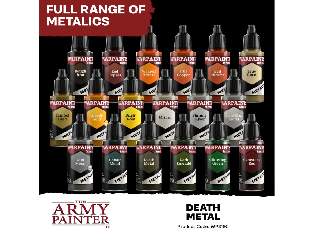 Akrylová farba Fanatic Metallic - Death Metal od výrobcu Army Painter je vhodná predovšetkým pri maľovaní brnení, zbraní alebo zbrojí na vašich miniatúrach. Obsahujú špecializovanú zmes hliníkových vločiek a sľudy pre najlepšiu kombináciu krytia a lesku, takže sú trblietavejšie ako tradičné metalické farby. Farby Fanatic ponúkajú bezkonkurenčné krytie, intenzívnu pigmentáciu, hladkú aplikáciu a zároveň sa neuveriteľne jednoducho používajú. Farbu bohatú na pigmenty je možné riediť až do extrémnych úrovní pre pokročilých technikov alebo nanášať priamo na miniatúru pre ľahké pokrytie pri zachovaní rozptylu pigmentu. Objem každej liekovky je 18 ml a obsahuje dve miešacie guličky.