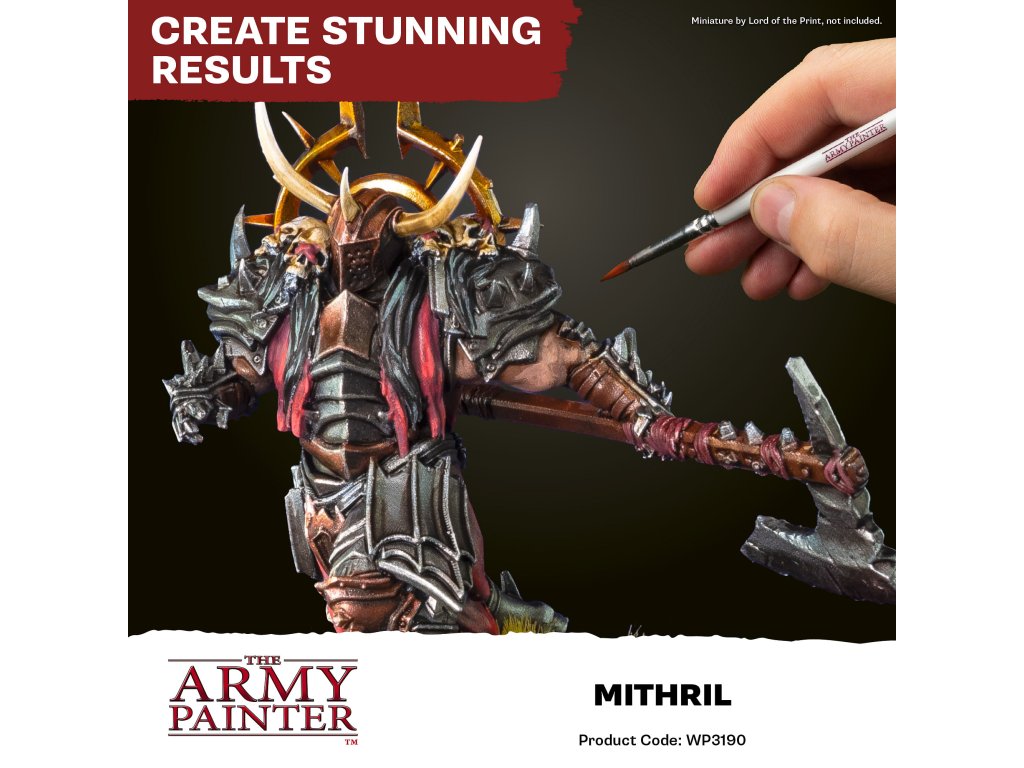 Akrylová farba Fanatic Metallic - Mithril od výrobcu Army Painter je vhodná predovšetkým pri maľovaní brnení, zbraní alebo zbrojí na vašich miniatúrach. Obsahujú špecializovanú zmes hliníkových vločiek a sľudy pre najlepšiu kombináciu krytia a lesku, takže sú trblietavejšie ako tradičné metalické farby. Farby Fanatic ponúkajú bezkonkurenčné krytie, intenzívnu pigmentáciu, hladkú aplikáciu a zároveň sa neuveriteľne jednoducho používajú. Farbu bohatú na pigmenty je možné riediť až do extrémnych úrovní pre pokročilých technikov alebo nanášať priamo na miniatúru pre ľahké pokrytie pri zachovaní rozptylu pigmentu. Objem každej liekovky je 18 ml a obsahuje dve miešacie guličky.