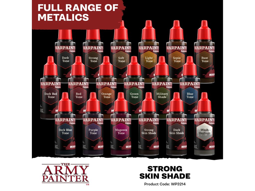Akrylová farba Fanatic Wash - Strong Skin Shade od výrobcu Army Painter. Vďaka wash farbám ľahko a rýchlo vytvoríte dojem hĺbky a tieňovania na vašich modeloch a miniatúrach. Farby Fanatic ponúkajú bezkonkurenčné krytie, intenzívnu pigmentáciu, hladkú aplikáciu a zároveň sa neuveriteľne jednoducho používajú. Farbu bohatú na pigmenty je možné riediť až do extrémnych úrovní pre pokročilých technikov alebo nanášať priamo na miniatúru pre ľahké pokrytie pri zachovaní rozptylu pigmentu. Objem každej liekovky je 18 ml a obsahuje dve miešacie guličky.