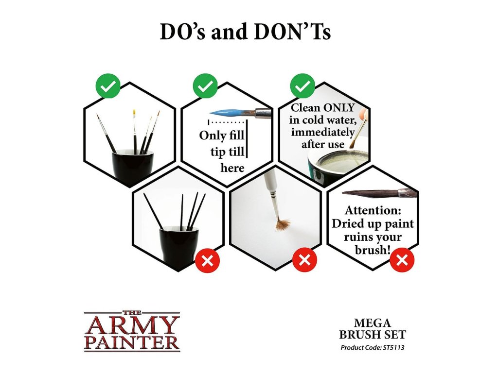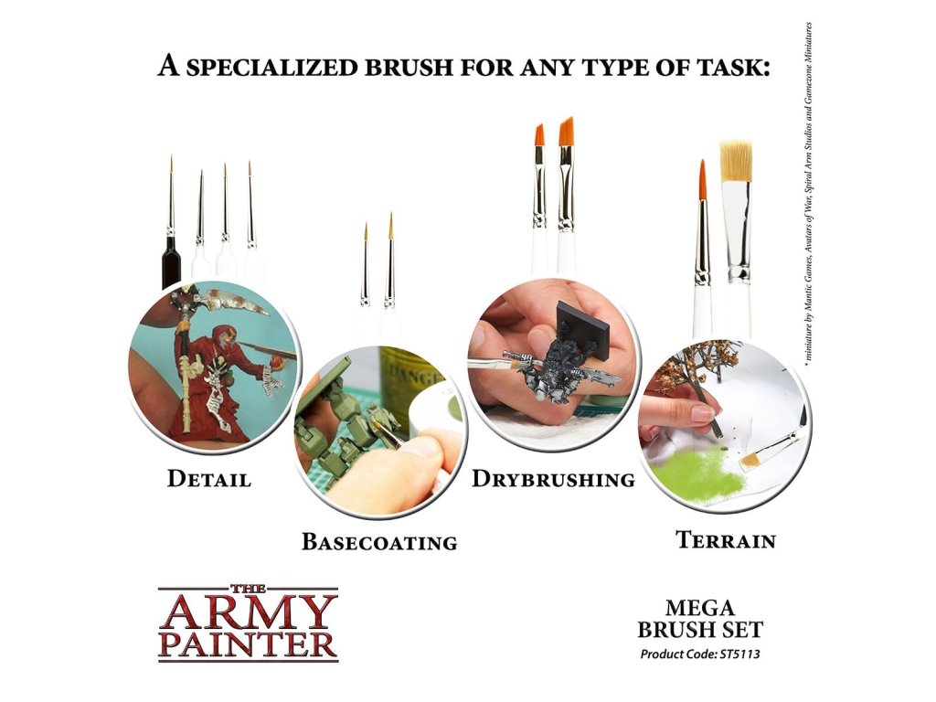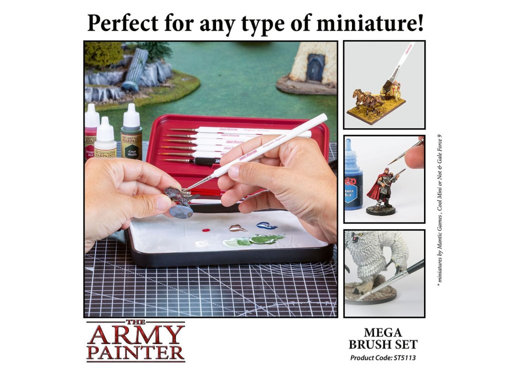 So sadou štetcov Army Painter: Mega Brush Set obsiahnete každý aspekt farbenia a maľovania vašich miniatúr! Balenie obsahuje štetce radu Wargamer s prírodným vlasom - tie najlepšie štetce v hobby odvetví. Obsah balenia: 1x Insane Detail kefy 1x Detail kefy 1x Character kefy 1x Regiment 1x Monster kefy 1x Small Drybrush & Large Drybrush 1x Vehicle/Terrain Brush 1x The Psycho brush 1x Kolinsky Masterclass