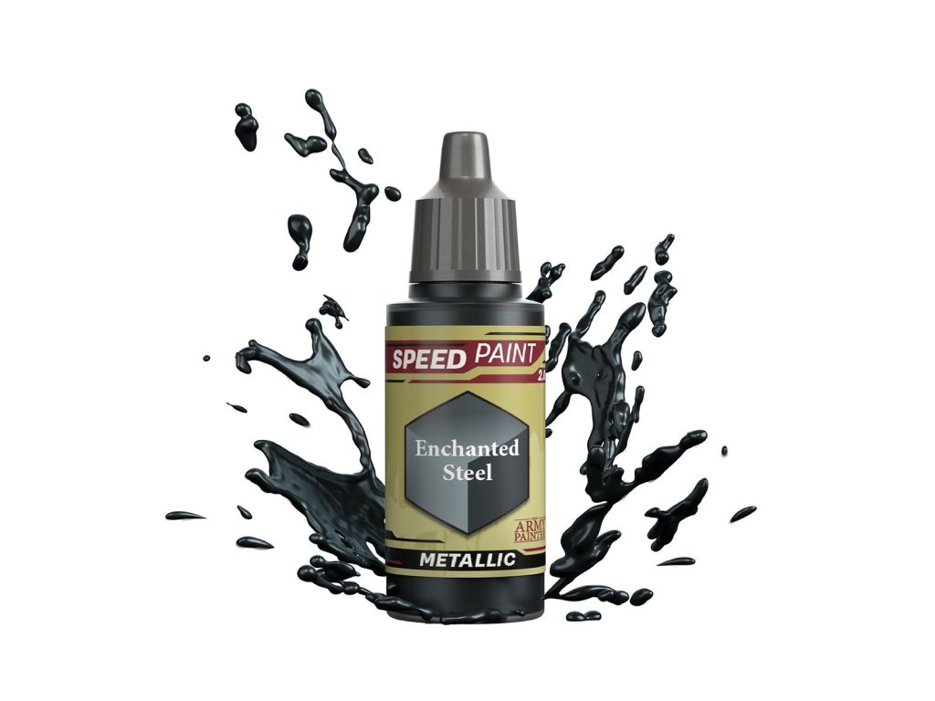 Vysoko kvalitná metalická farba Speedpaint Enchanted Steel 2.0 od značky Army Painter sa líši lepším novým zložením ako predchádzajúci rad Speedpaint. Farba je vhodná pre miniatúry akéhokoľvek druhu. Farby radu Speedpaint majú redšiu konzistenciu a tým figúrku perfektne vytieňujú vo všetkých záhyboch a skulinách, napriek tomu majú dostatok pigmentu na perfektné krytie. Farbu už neriedime vodou a nanášame na miniatúru ošetrenú základným sprejom alebo farbou. Vzhľadom na konzistenciu farby, odporúčame použiť skôr pevnú paletu. Všetky farby Speedpaint sa dodávajú s dvoma oceľovými miešacími guličkami už vloženými do fľaštičky, čo vám uľahčí dosiahnutie dokonalej konzistencie bez nutnosti dlhého pretrepávania.