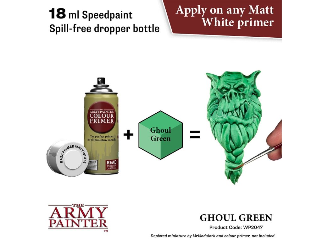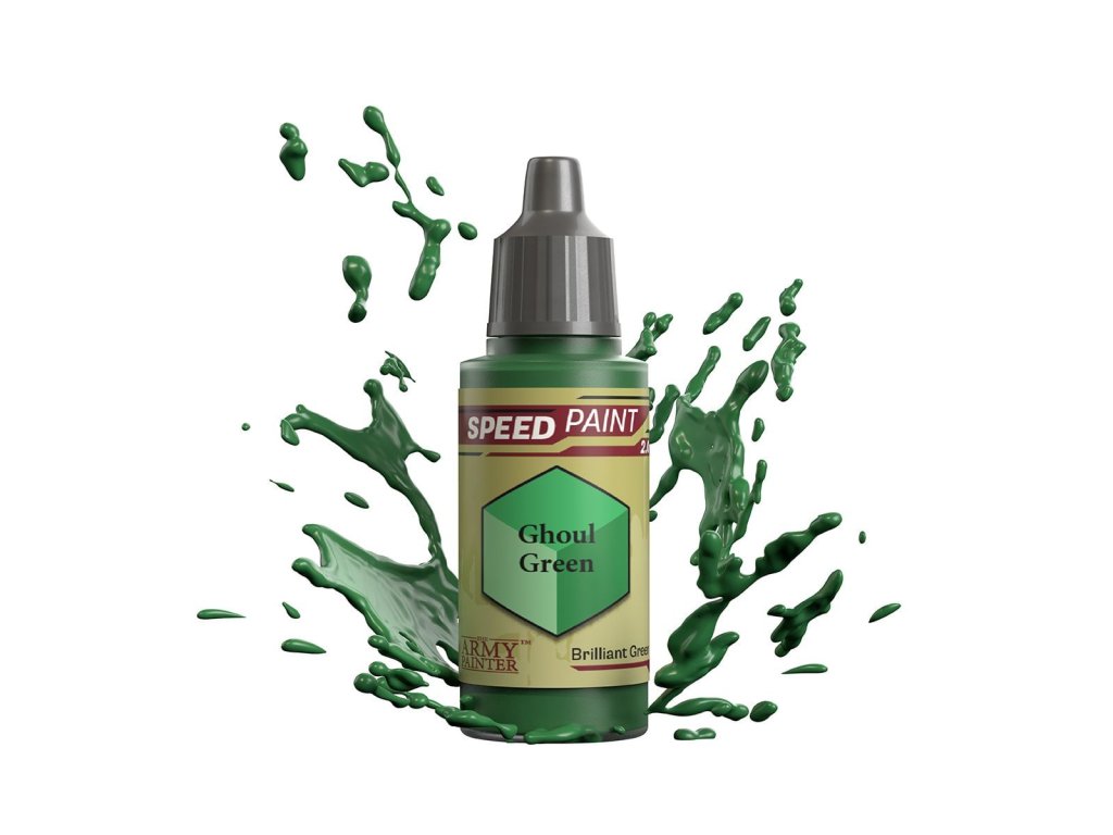 Vysoko kvalitná farba Speedpaint Ghoul Green 2.0 od značky Army Painter sa líši lepším novým zložením ako predchádzajúci rad Speedpaint. Farba je vhodná pre miniatúry akéhokoľvek druhu. Farby radu Speedpaint majú redšiu konzistenciu a tým figúrku perfektne vytieňujú vo všetkých záhyboch a skulinách, napriek tomu majú dostatok pigmentu na perfektné krytie. Farbu už neriedime vodou a nanášame na miniatúru ošetrenú základným sprejom alebo farbou. Vzhľadom na konzistenciu farby, odporúčame použiť skôr pevnú paletu. Všetky farby Speedpaint sa dodávajú s dvoma oceľovými miešacími guličkami už vloženými do fľaštičky, čo vám uľahčí dosiahnutie dokonalej konzistencie bez nutnosti dlhého pretrepávania.