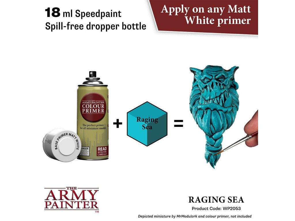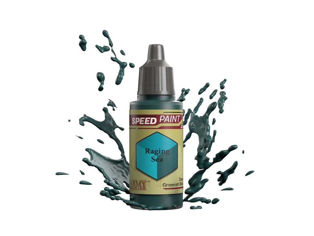 Vysoko kvalitná farba Speedpaint Raging Sea 2.0 od značky Army Painter sa líši lepším novým zložením ako predchádzajúci rad Speedpaint. Farba je vhodná pre miniatúry akéhokoľvek druhu. Farby radu Speedpaint majú redšiu konzistenciu a tým figúrku perfektne vytieňujú vo všetkých záhyboch a skulinách, napriek tomu majú dostatok pigmentu na perfektné krytie. Farbu už neriedime vodou a nanášame na miniatúru ošetrenú základným sprejom alebo farbou. Vzhľadom na konzistenciu farby, odporúčame použiť skôr pevnú paletu. Všetky farby Speedpaint sa dodávajú s dvoma oceľovými miešacími guličkami už vloženými do fľaštičky, čo vám uľahčí dosiahnutie dokonalej konzistencie bez nutnosti dlhého pretrepávania.