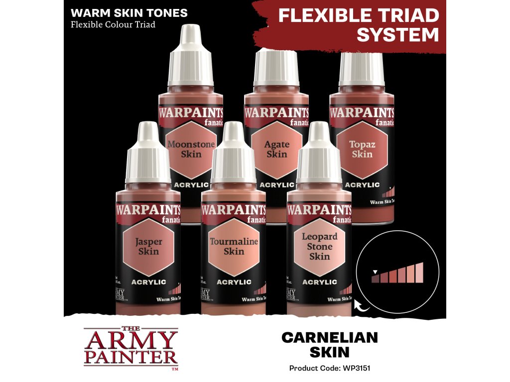 Akrylová farba Warpaints Fanatic - Carnelian Skin od výrobcu Army Painter je vhodná pre miniatúry akéhokoľvek druhu. Farby Warpaints Fanatic ponúkajú bezkonkurenčné krytie, intenzívnu pigmentáciu, hladkú aplikáciu a zároveň sa neuveriteľne ľahko používajú. Farbu bohatú na pigmenty je možné riediť až do extrémnych úrovní pre pokročilých technikov alebo nanášať priamo na miniatúru pre ľahké pokrytie pri zachovaní rozptylu pigmentu. Objem každej fľaštičky je 18 ml a obsahuje dve miešacie guličky.