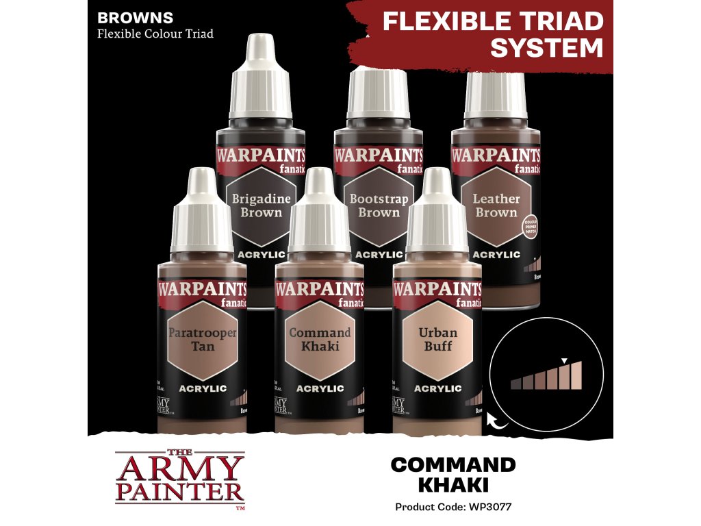Akrylová farba Warpaints Fanatic - Command Khaki od výrobcu Army Painter je vhodná pre miniatúry akéhokoľvek druhu. Farby Warpaints Fanatic ponúkajú bezkonkurenčné krytie, intenzívnu pigmentáciu, hladkú aplikáciu a zároveň sa neuveriteľne ľahko používajú. Farbu bohatú na pigmenty je možné riediť až do extrémnych úrovní pre pokročilých technikov alebo nanášať priamo na miniatúru pre ľahké pokrytie pri zachovaní rozptylu pigmentu. Objem každej fľaštičky je 18 ml a obsahuje dve miešacie guličky.