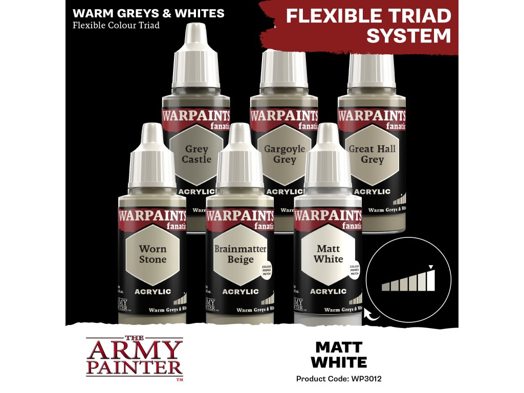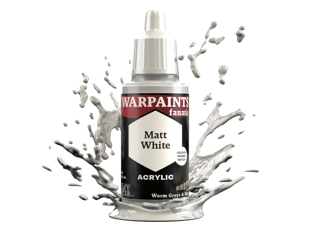 Akrylová farba Warpaints Fanatic - Matt White od výrobcu Army Painter je vhodná pre miniatúry akéhokoľvek druhu. Farby Warpaints Fanatic ponúkajú bezkonkurenčné krytie, intenzívnu pigmentáciu, hladkú aplikáciu a zároveň sa neuveriteľne ľahko používajú. Farbu bohatú na pigmenty je možné riediť až do extrémnych úrovní pre pokročilých technikov alebo nanášať priamo na miniatúru pre ľahké pokrytie pri zachovaní rozptylu pigmentu. Objem každej fľaštičky je 18 ml a obsahuje dve miešacie guličky.