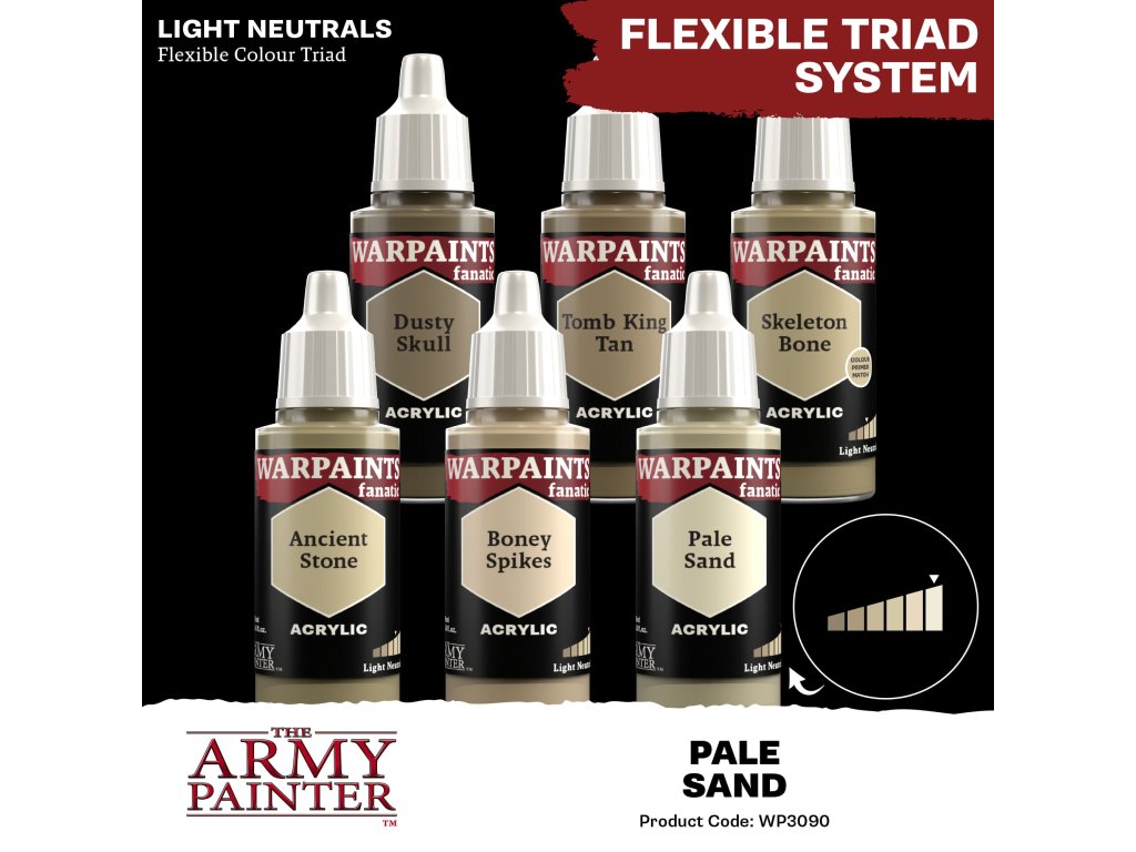 Akrylová farba Warpaints Fanatic - Pale Sand od výrobcu Army Painter je vhodná pre miniatúry akéhokoľvek druhu. Farby Warpaints Fanatic ponúkajú bezkonkurenčné krytie, intenzívnu pigmentáciu, hladkú aplikáciu a zároveň sa neuveriteľne ľahko používajú. Farbu bohatú na pigmenty je možné riediť až do extrémnych úrovní pre pokročilých technikov alebo nanášať priamo na miniatúru pre ľahké pokrytie pri zachovaní rozptylu pigmentu. Objem každej fľaštičky je 18 ml a obsahuje dve miešacie guličky.