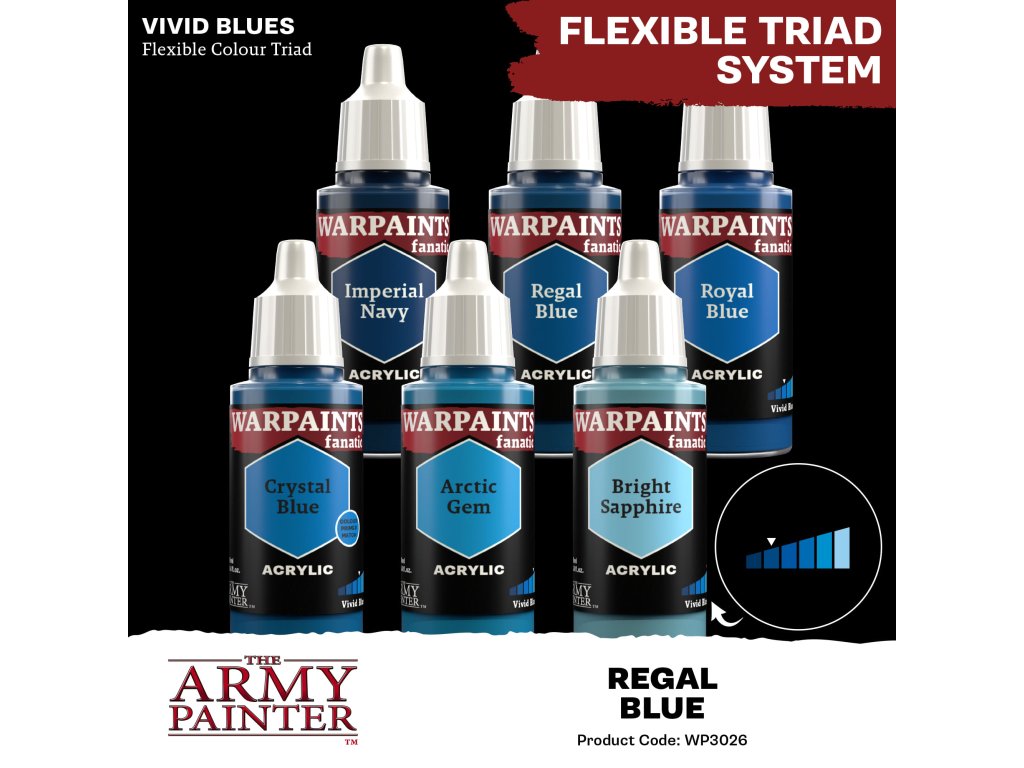 Akrylová farba Warpaints Fanatic - Regal Blue od výrobcu Army Painter je vhodná pre miniatúry akéhokoľvek druhu. Farby Warpaints Fanatic ponúkajú bezkonkurenčné krytie, intenzívnu pigmentáciu, hladkú aplikáciu a zároveň sa neuveriteľne ľahko používajú. Farbu bohatú na pigmenty je možné riediť až do extrémnych úrovní pre pokročilých technikov alebo nanášať priamo na miniatúru pre ľahké pokrytie pri zachovaní rozptylu pigmentu. Objem každej fľaštičky je 18 ml a obsahuje dve miešacie guličky.