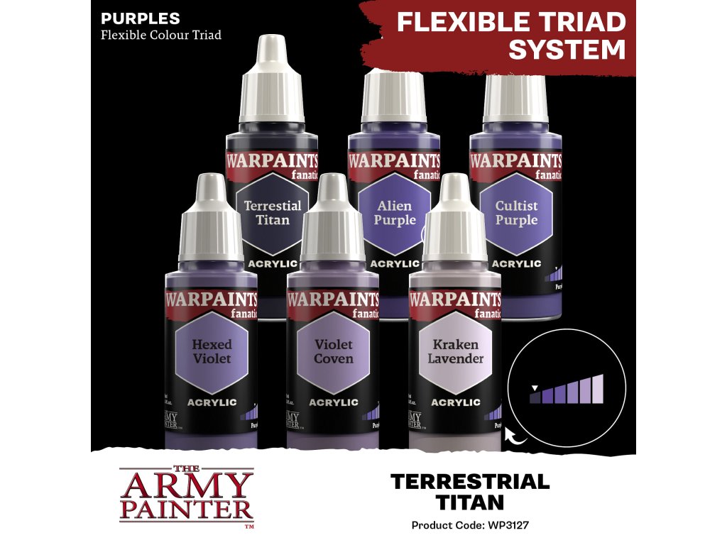 Akrylová farba Warpaints Fanatic - Terrestrial Titan od výrobcu Army Painter je vhodná pre miniatúry akéhokoľvek druhu. Farby Warpaints Fanatic ponúkajú bezkonkurenčné krytie, intenzívnu pigmentáciu, hladkú aplikáciu a zároveň sa neuveriteľne ľahko používajú. Farbu bohatú na pigmenty je možné riediť až do extrémnych úrovní pre pokročilých technikov alebo nanášať priamo na miniatúru pre ľahké pokrytie pri zachovaní rozptylu pigmentu. Objem každej fľaštičky je 18 ml a obsahuje dve miešacie guličky.