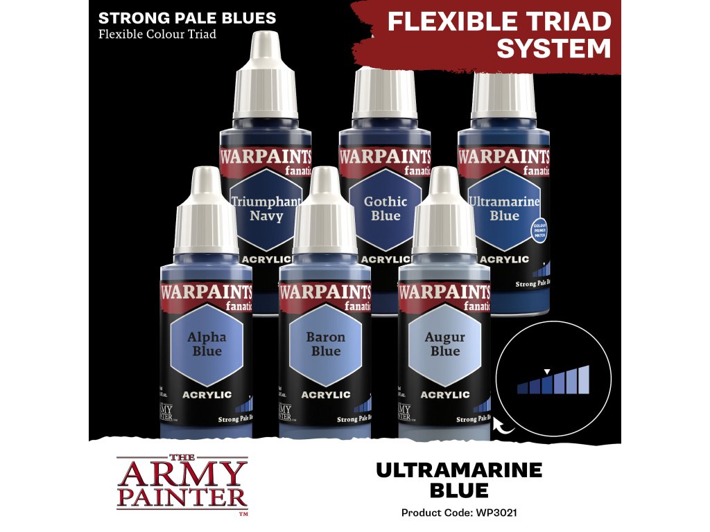 Akrylová farba Warpaints Fanatic - Ultramarine Blue od výrobcu Army Painter je vhodná pre miniatúry akéhokoľvek druhu. Farby Warpaints Fanatic ponúkajú bezkonkurenčné krytie, intenzívnu pigmentáciu, hladkú aplikáciu a zároveň sa neuveriteľne ľahko používajú. Farbu bohatú na pigmenty je možné riediť až do extrémnych úrovní pre pokročilých technikov alebo nanášať priamo na miniatúru pre ľahké pokrytie pri zachovaní rozptylu pigmentu. Objem každej fľaštičky je 18 ml a obsahuje dve miešacie guličky.