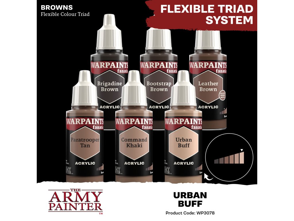 Akrylová farba Warpaints Fanatic - Urban Buff od výrobcu Army Painter je vhodná pre miniatúry akéhokoľvek druhu. Farby Warpaints Fanatic ponúkajú bezkonkurenčné krytie, intenzívnu pigmentáciu, hladkú aplikáciu a zároveň sa neuveriteľne ľahko používajú. Farbu bohatú na pigmenty je možné riediť až do extrémnych úrovní pre pokročilých technikov alebo nanášať priamo na miniatúru pre ľahké pokrytie pri zachovaní rozptylu pigmentu. Objem každej fľaštičky je 18 ml a obsahuje dve miešacie guličky.