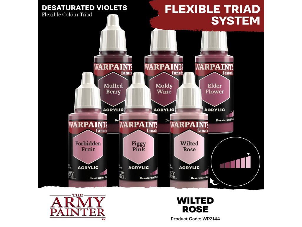 Akrylová farba Warpaints Fanatic - Wilted Rose od výrobcu Army Painter je vhodná pre miniatúry akéhokoľvek druhu. Farby Warpaints Fanatic ponúkajú bezkonkurenčné krytie, intenzívnu pigmentáciu, hladkú aplikáciu a zároveň sa neuveriteľne ľahko používajú. Farbu bohatú na pigmenty je možné riediť až do extrémnych úrovní pre pokročilých technikov alebo nanášať priamo na miniatúru pre ľahké pokrytie pri zachovaní rozptylu pigmentu. Objem každej fľaštičky je 18 ml a obsahuje dve miešacie guličky.