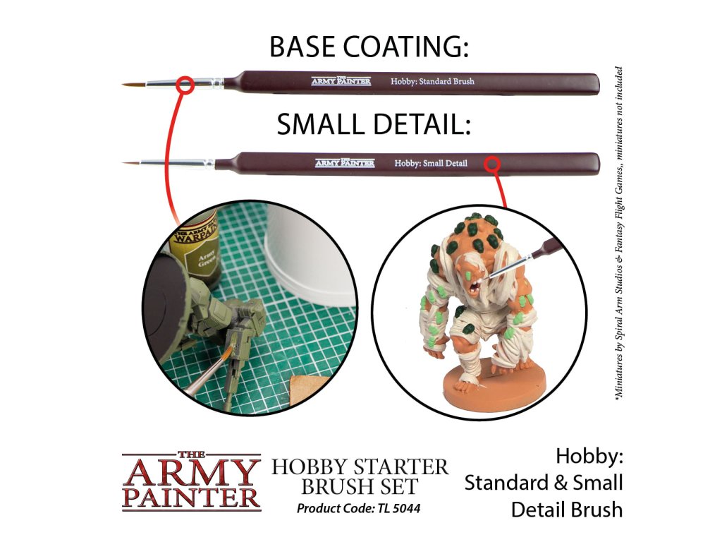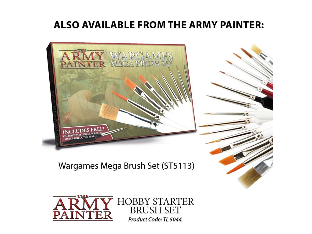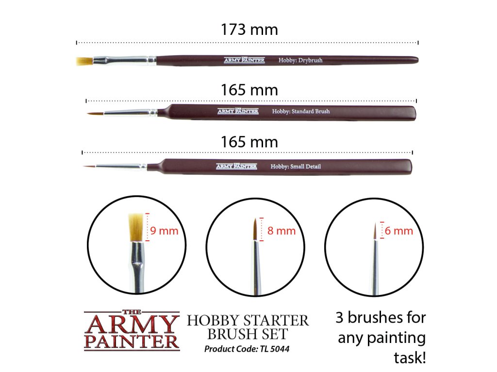 Sada štetcov Hobby Starter Brush Set od spoločnosti Army Painter obsahuje 3 štetce na farbenie modelov a miniatúr. Súčasťou sady sú tieto štetce: Standart Brush, Drybrush a Small Detail.