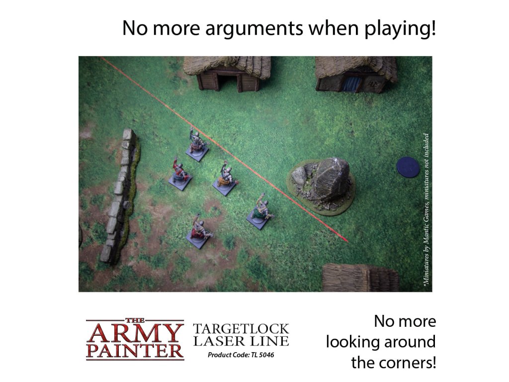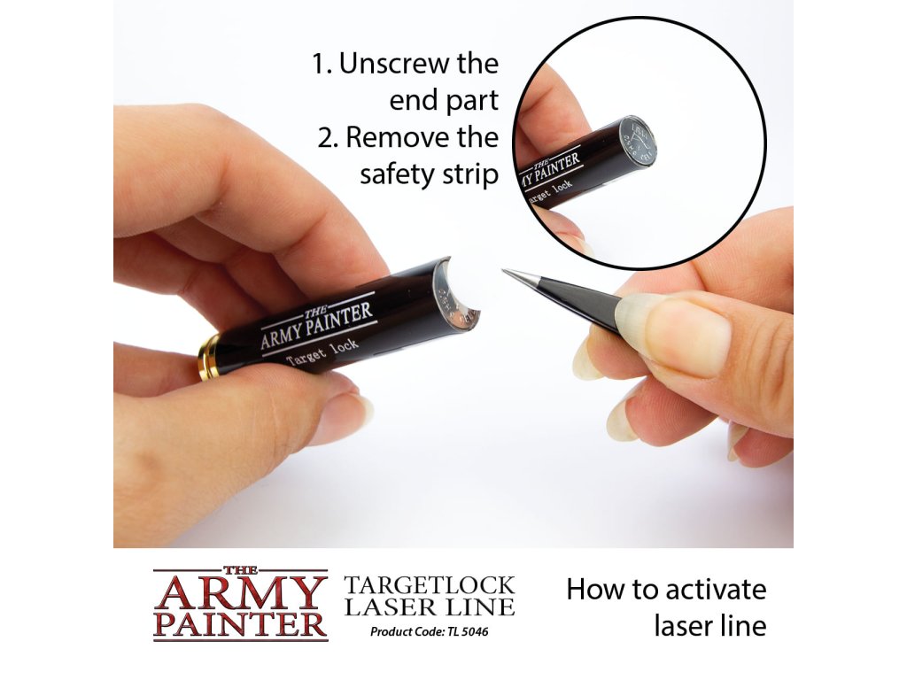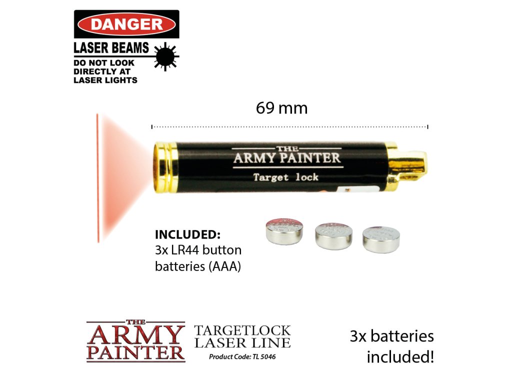 Army Painter Markerlight Laser Pointer je laserové ukazovátko určené na vojnové hry s miniatúrami. Zvlášť vhodné na určovanie fyzických účinkov a efektov kúziel. Súčasťou balenia sú 3 batérie AAA (LR44), pred použitím odstráňte bezpečnostnú pásku.