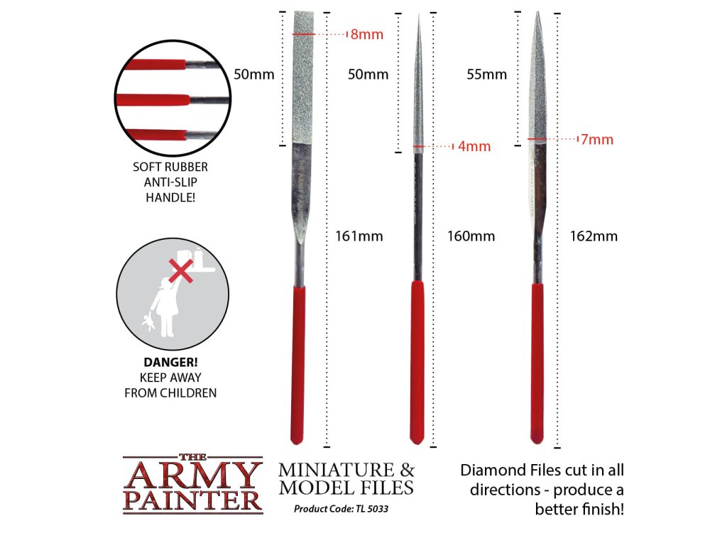 Sada 3 modelárskych pilníkov Army Painter, vhodných na plast, rezín aj kov.