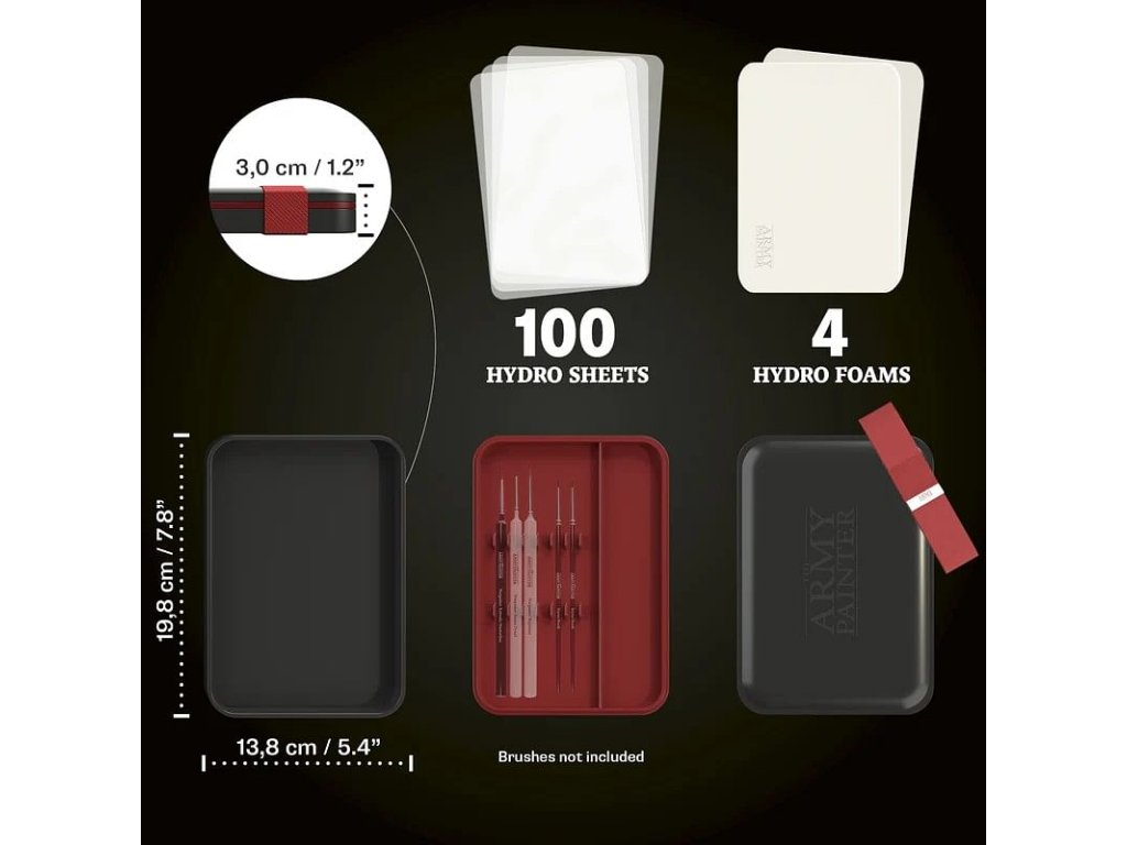 Súprava Army Painter Wet Paleta Hydro Bundle obsahuje okrem samotnej palety aj 100 ks Hydro Sheets a 4 ks Hydro peny. Wet Palette je nutnosťou pre každého modelára, pretože uchová vaše farby dlhšie čerstvé a ochráni ich pred vyschnutím! To znamená, že môžeš na svojich modeloch a miniatúrach pracovať dlhšie bez toho, aby si musel neustále premiešavať alebo plytvať farbou. Je to tiež perfektný nástroj na vytváranie vlastných farebných mixov.