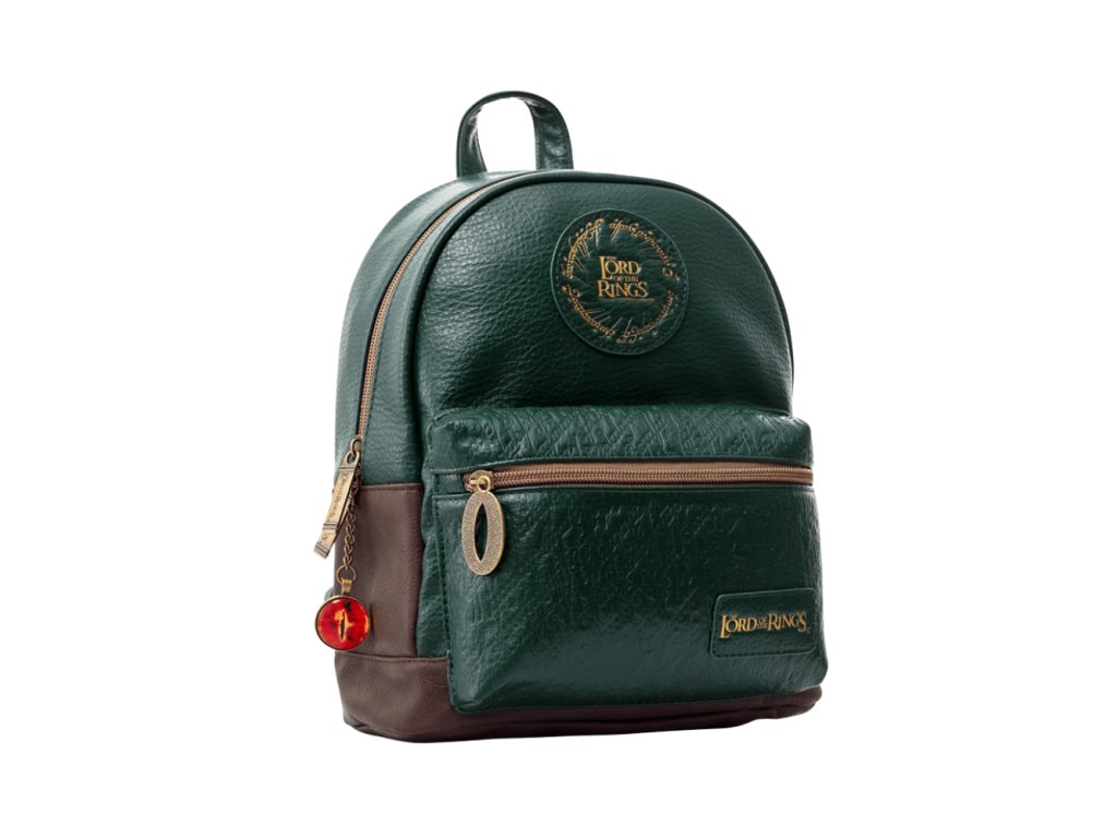 Módny plecniak z umelej kože. Okrem hlavného oddielu má tiež predné menšie vrecko a zadné vrecko, vďaka ktorému môžeš bezpečne uschovať napríklad doklady alebo peňaženku. Batoh je zdobený krásnymi detailmi - Sauronovým okom, extra nášivkou z umelej kože s nápisom z Jedného prsteňa a malým príveskom vládnuceho prsteňa moci na jazdci.