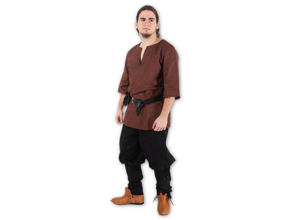 Jednoduchá košeľa voľnejšieho strihu s trojštvrťovým rukávom. Je ušitá z kvalitného bavlneného plátna. Vďaka ľahkosti a materiálu sa v nej budete cítiť príjemne aj počas teplých letných mesiacov. Hnedú košeľu Odin ľahko využijete ako základ každého historického alebo fantasy kostýmu či už sa chystáte na dreváreň, LARP alebo historický jarmok. V našej ponuke nájdete aj košeľu zelenú, čiernu alebo krémovú. Zaobstarajte si k tejto slušivej košeli niektoré z našich historických a fantasy nohavíc, urobíte skvelý dojem. Chystáte sa do boja a hovoríte si, že košeľa nie je tá najlepšia obrana? Asi máte pravdu, čo tak sa pre istotu vybaviť aj koženou zbrojou z našej ponuky?