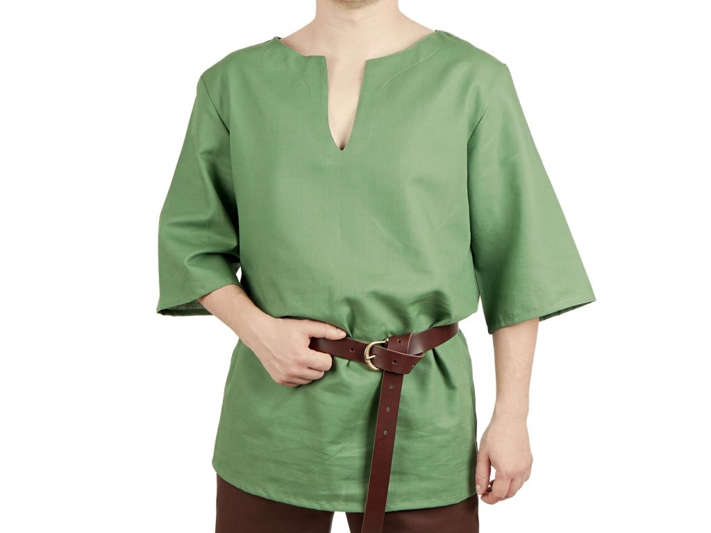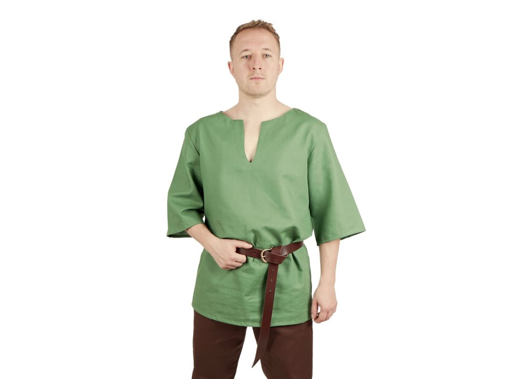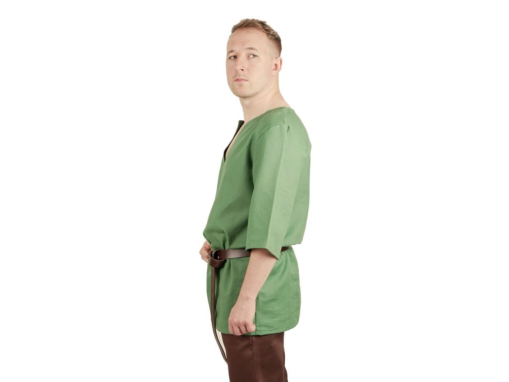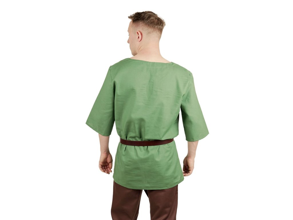 Jednoduchá košeľa voľnejšieho strihu s trojštvrťovým rukávom. Je ušitá z kvalitného bavlneného plátna. Vďaka ľahkosti a materiálu sa v nej budete cítiť príjemne aj počas teplých letných mesiacov. Zelenú košeľu Odin ľahko využijete ako základ každého historického alebo fantasy kostýmu či už sa chystáte na dreváreň, LARP alebo historický jarmok. Môžete si ju ale zaobstarať aj v iných farbách. V našej ponuke nájdete aj košeľu hnedú, čiernu alebo krémovú. Zaobstarajte si k tejto slušivej košeli niektoré z našich historických a fantasy nohavíc, urobíte skvelý dojem. Chystáte sa do boja a hovoríte si, že košeľa nie je tá najlepšia obrana? Asi máte pravdu, čo tak sa pre istotu vybaviť aj koženou zbrojou z našej ponuky?