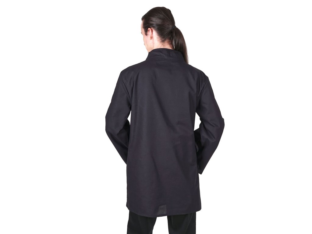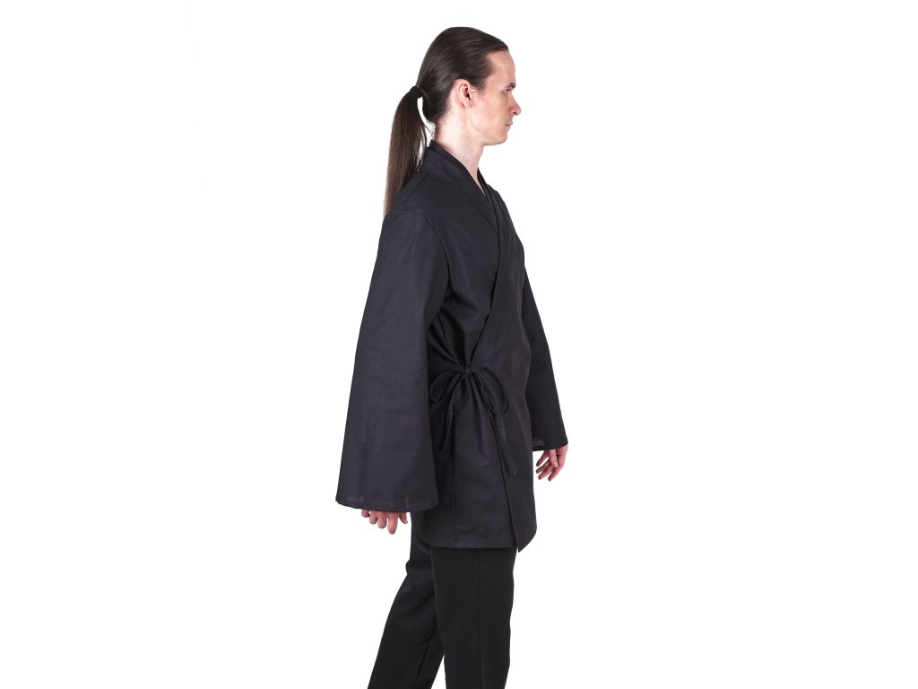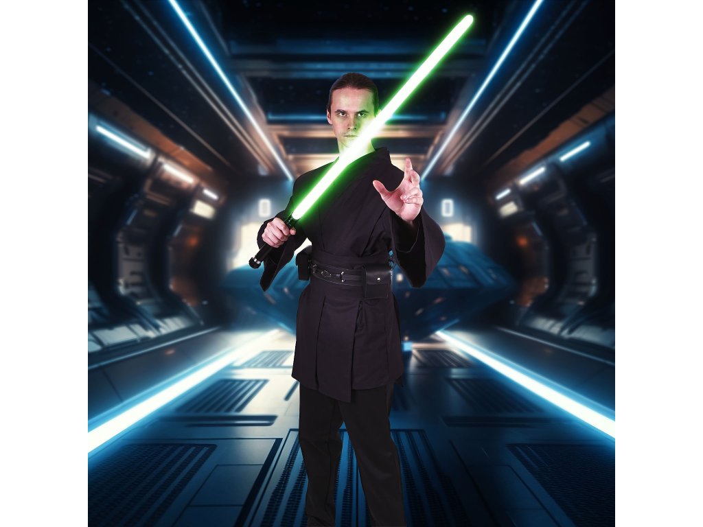 Bavlnená vrchná tunika v čiernej farbe pre všetkých rytierov a majstrov Jedi aj ich nádejných Padawanov. Napriek tomu, že býva čierna farba tradičná skôr u Sithov, obľúbil si ju napríklad aj Luke Skywalker. V našom kostýme Jedi urobíte perfektný dojem v tej najhoršej putyke Mos Eisley aj v Galaktickom senáte na Coruscante. Jediská vrchná tunika je vyrobená zo 100% bavlny. Vďaka kvalitnému materiálu je príjemná na nosenie, pohodlná a vzdušná. Zapína sa pomocou viazania, a to vždy zľava doprava. Utiahnutím si tak tuniku môžete vždy ľahko prispôsobiť tak, aby vám perfektne sedela. Vrchná tunika má široký dlhý rukáv a jednoduchý, ozdobný lem okolo krku. Okrem čiernej varianty šijeme tuniku aj vo svetlej béžovej farbe, alebo štýlovej hnedej farbe. Dokonalý kostým rytierov Jedi, ochrancov mieru vo svete Star Wars, vytvoríte spojením piatich častí: okrem vrchnej tuniky budete potrebovať aj tuniku spodnú, štýlový tabard, bavlnený opasok sash a plášť majstrov Jedi. To všetko navyše môžete doplniť koženým opaskom s vreckami a legendárnou zbraňou rytierov Jedi - svetelným mečom. Model je vysoký 185 cm a má na sebe tuniku Jedi veľkosti M. Tunika zodpovedá oficiálnym štandardom Star Wars kostýmovej organizácie.