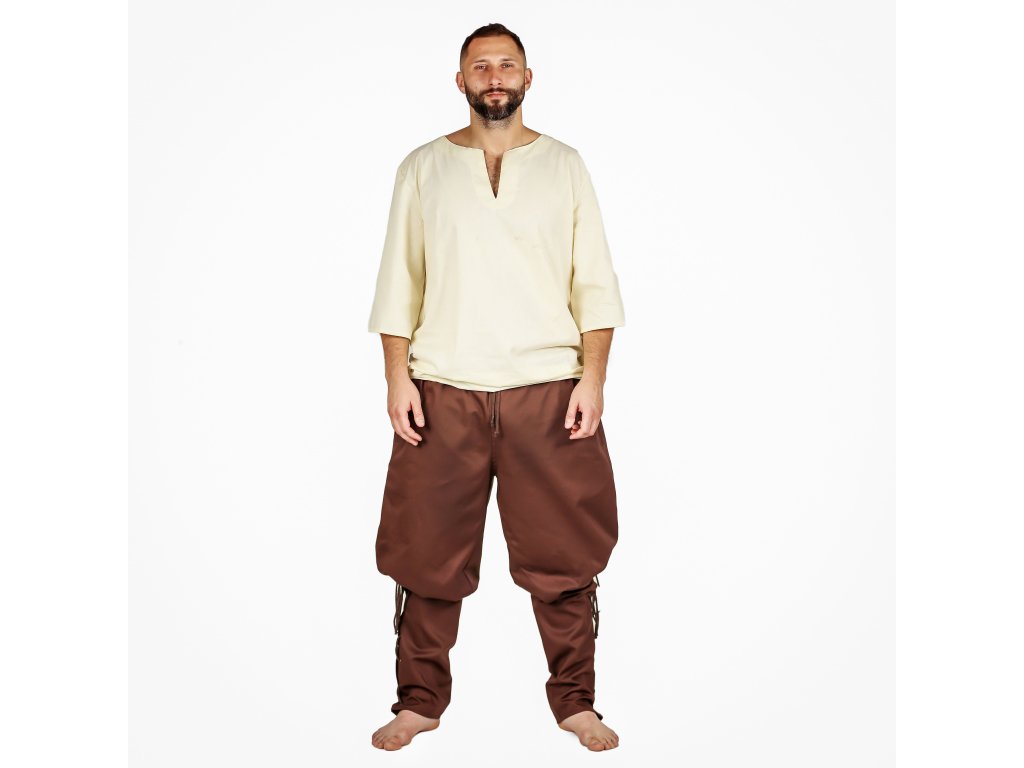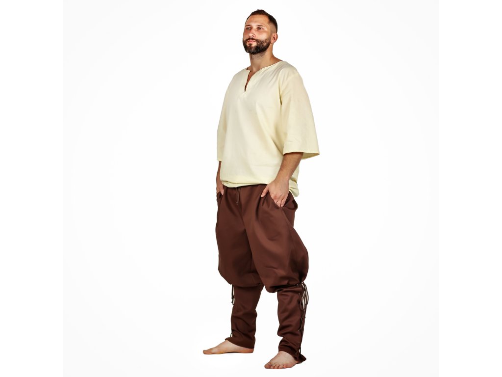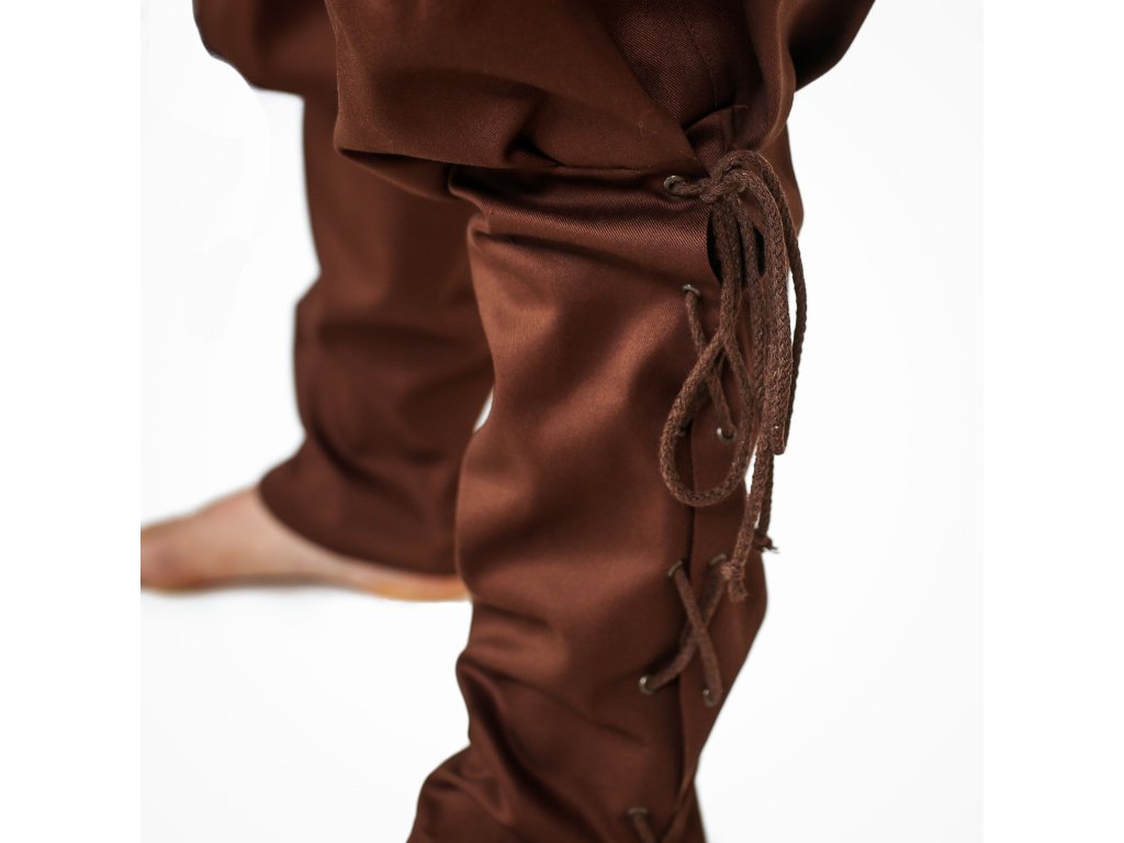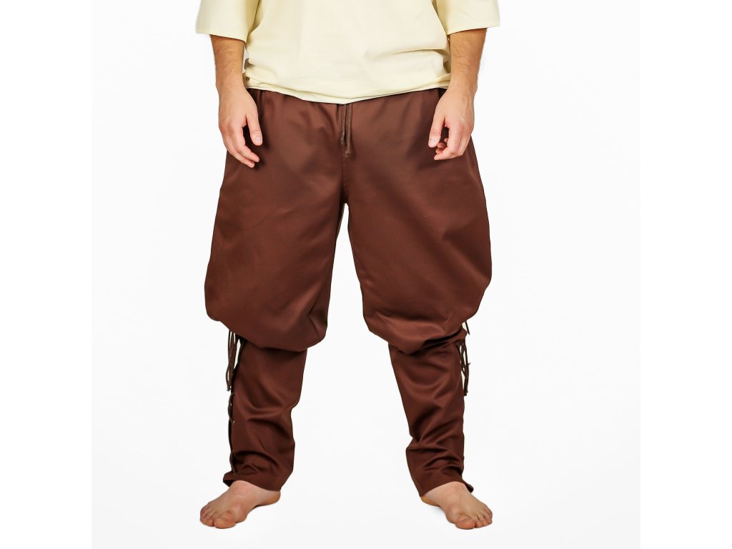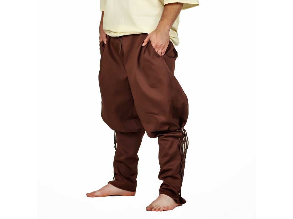 Napokon pohodlné nohavice pre každú príležitosť! Štýlové hnedé nohavice so širokým pásom sú ušité z prvotriednej bavlny. Vďaka kvalitnému materiálu sa v nich budete vždy cítiť príjemne po náročnom dni na poli aj na bojisku. Zúžené nohavice si môžete šnurovaním utiahnuť tak, aby vám perfektne sedeli. Navyše majú nohavice dve priestranné vrecká. Vďaka ich charakteristickému vzhľadu poslúži ako skvelý základ historického alebo fantasy kostýmu. Využijete ich tak na dreváreň, fantasy LARP aj historický jarmok. Môžete si ich zaobstarať aj v slušivej čiernej variante. Vytvorte si perfektný kostým a kúpte si k nohaviciam aj koženú vestu z našej ponuky. Blíži sa zima? Radšej nič neriskujte a zabaľte sa do elegantného plášťa.