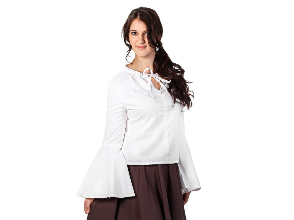 Krásna jednoduchá blúza z bavlneného plátna s rozšírenými rukávmi, ktoré vnesú pôvab do každého pohybu. K sukniam a šnurovačke z našej dielne ako stvorená. Veľkosť výstrihu je možné upraviť pomocou šnúrky na zaviazanie. Viac o použitom materiáli sa dočítate tu: popis materiálov.