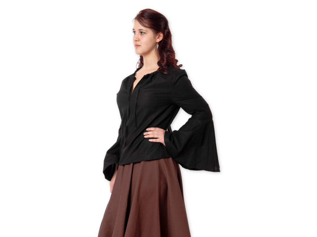 Krásna jednoduchá blúza z bavlneného plátna s rozšírenými rukávmi, ktoré vnesú pôvab do každého vášho pohybu. K sukniam a živôtikom z našej dielne ako stvorená. Veľkosť výstrihu je možné upraviť pomocou šnúrky na zaviazanie. Viac o použitom materiáli sa dočítate tu: popis materiálov.