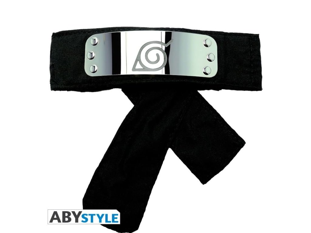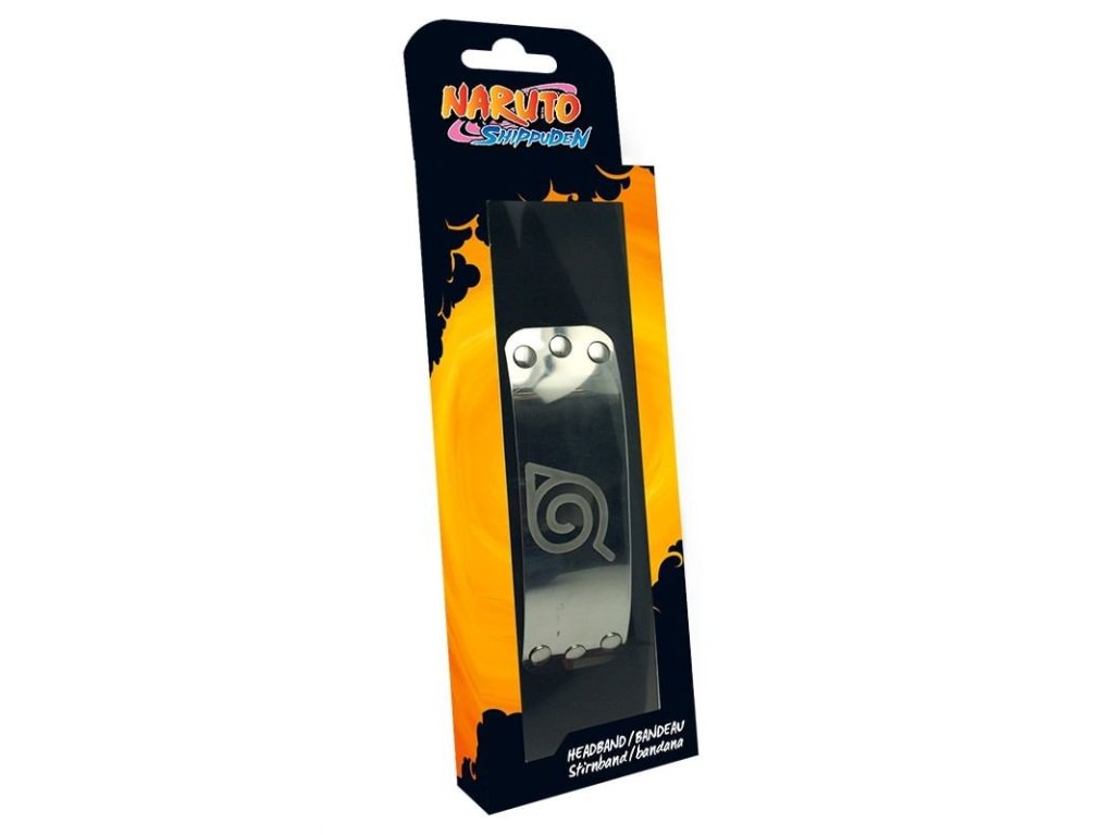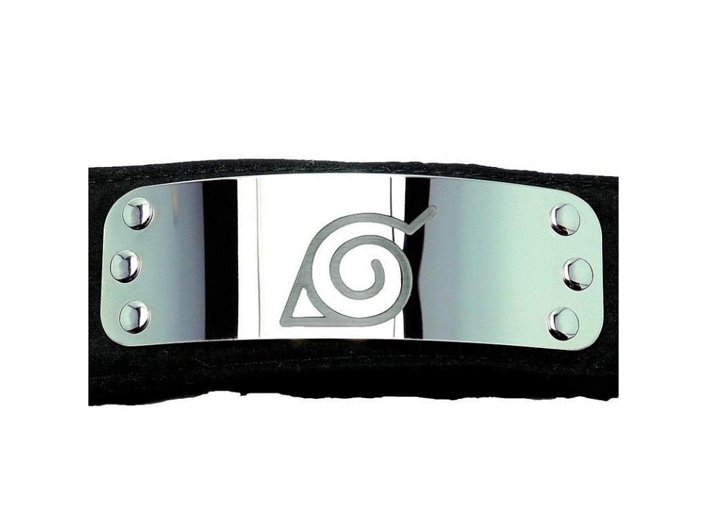Čelenka so symbolom Listovej, Konohagakure no Sato - Dedina ukrytá v listoch. Podklad je tvorený pruhom látky o rozmeroch 90 x 5 cm, farba čierna. Na látke je pripevnený kovový plát (o rozmeroch 12,5 x 4 cm) s vyrazeným symbolom Konoha.