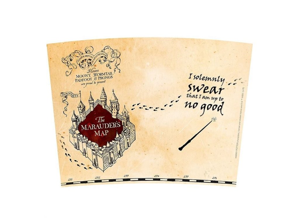 Slávnostne prisahám, že som pripravený ku každej zle... Uchovajte svoj nápoj čerstvý za pomoci kúziel tohto cestovného hrnčeka s grafikou Pobertovho plánku z príbehov o Harrym Potterovi! Cestovný hrnček nie je vhodný do mikrovlnnej rúry ani do umývačky riadu. Nelejte do hrnčeka priamo vriacu vodu, môže to spôsobiť deformáciu plastu.