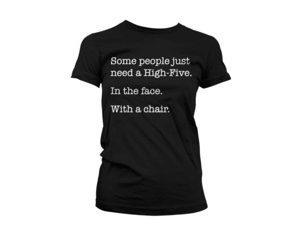 Niektorí ľudia jednoducho potrebujú placáka stoličiek do tváre! Dochádza ti trpezlivosť? Prejav sa týmto so sarkastickým tričkom Some People Just Need A High Five. Triko zaručene pobaví svojim nevšedným humorom, ale tiež poteší jednoduchým dizajnom. Jednoducho ideálny kúsok na rodinné oslavy, školské zrazy alebo na herné večery s priateľmi, ktorí si po rokoch stále neprečítali pravidlá obľúbenej platne. Povedz všetko dôležité jedným trikom!