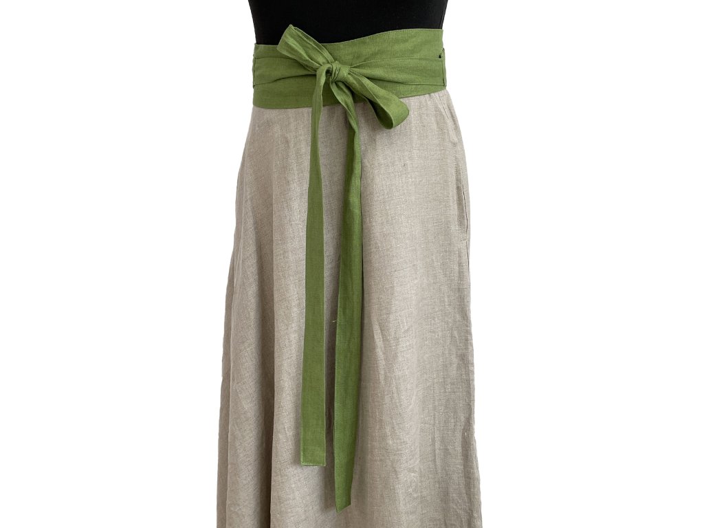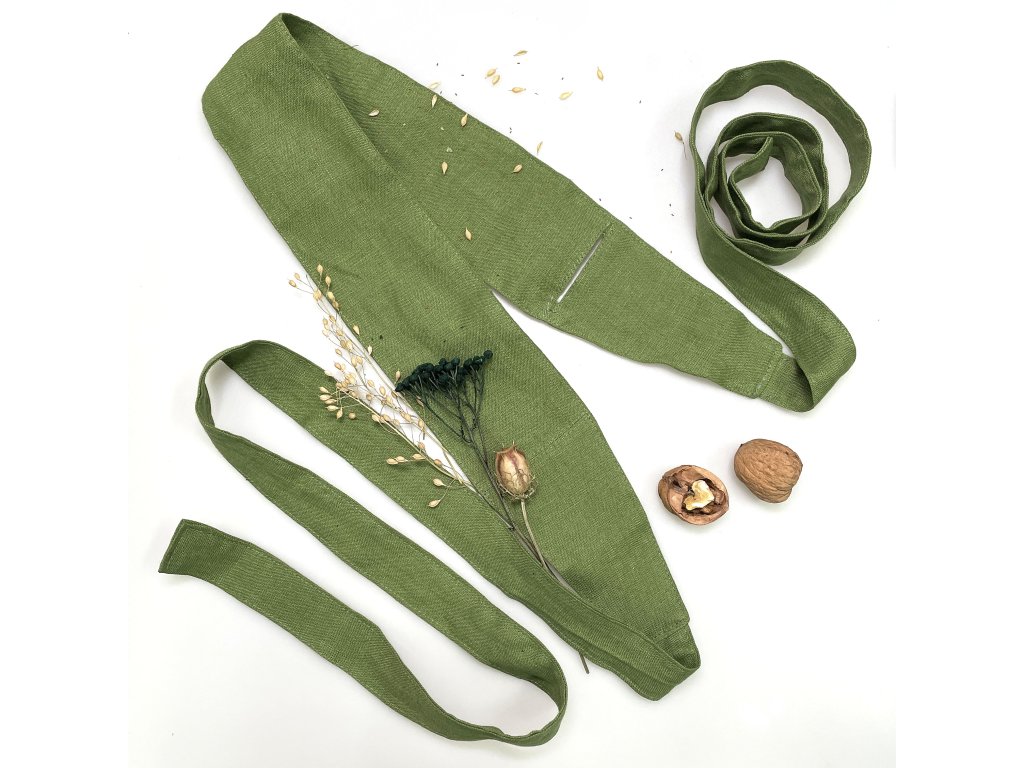 Elegantný ľanový opasok sa dokonale hodí nielen k sukni, ale aj k šatám a nohaviciam. Do vášho outfitu vnesie štipku jednoduchej elegancie a zvýrazní vaše prednosti. Uviazať ho môžete na mašľu alebo len jednoducho stiahnuť a konce opasku nechať voľne viať. Ľanový opasok pre vás šijeme v štyroch farbách: zelená, piesková, fialová, čierna. Oblečenie zo 100% ľanu je veľmi obľúbené vďaka vlastnostiam tejto látky. Prečítajte si viac informácií o 100% ľanu, ktorý takmer nestarne a odoláva nástrahám bežného nosenia s gráciou. Dámsky ľanový opasok sa skvele hodí napríklad k našej dámskej dlhej ľanovej sukni. Rozmery: Veľkosť S šírka pásky 32 cm až 40 cm, pre obvod pása 60 - 80 cm výška pásky 8 cm dĺžka širokej časti 83 cm dĺžka úzkej časti 200 cm a šírka 3 cm celková dĺžka pásky 283 cm Veľkosť M šírka pásky 40 cm až 48 cm, pre obvod pása 8 98 cm dĺžka úzkej časti 200 cm a šírka 3 cm celková dĺžka pásky 298 cm Veľkosť L šírka pásky 53 cm až 60 cm, pre obvod pása 104 - 120 cm výška pásky 8 cm dĺžka širokej časti 124 cm dĺžka úzkej časti 200 cm a šírka 3 cm