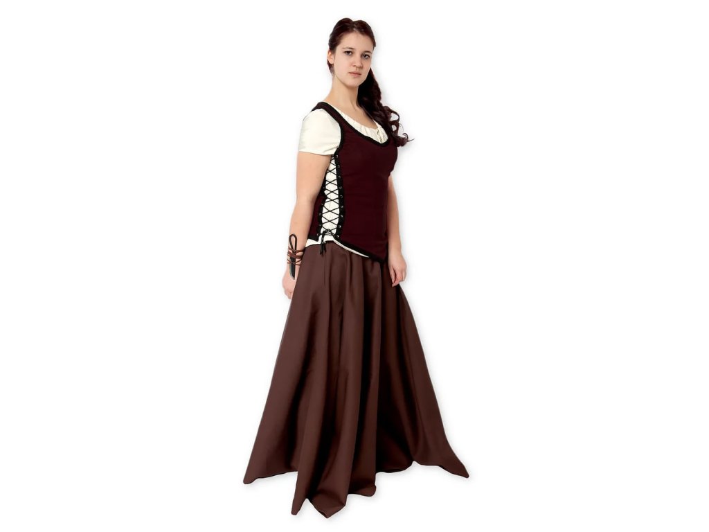 Odvážne vypasovaný dámsky živôtik zo scuby (brúsený semiš) je ako stvorený pre dámy, ktoré by si rady dopriali trochu luxusu. Pod takým živôtikom sa bude vaša hruď dmuť pýchou jedna báseň. Okolité dámy budú len závidieť. Vďaka elegantnému šnurovaniu na bokoch sa živôtik prispôsobí každej postave a nechá vyniknúť krásne ženské tvary. S dlhou sukňou, blúzkou a živôtikom od našich krajčírok vytvoríte pôvabnú kombináciu. Dámsky živôtik využijete nielen ku kostýmu na LARP, ale parádu s ním urobíte aj pri bežnom nosení. Napríklad v kombinácii s ľanovou sukňou, ktorú šijeme vo viacerých farbách. Neprehliadnite aj ponuku našich kožených opaskov a taštičiek a vačkov, ktoré nielen váš kostým, ale celý outfit dovedú k dokonalosti. Dámsky živôtik ponúkame v štyroch farbách: hnedý, čierny, zelený a vínový.