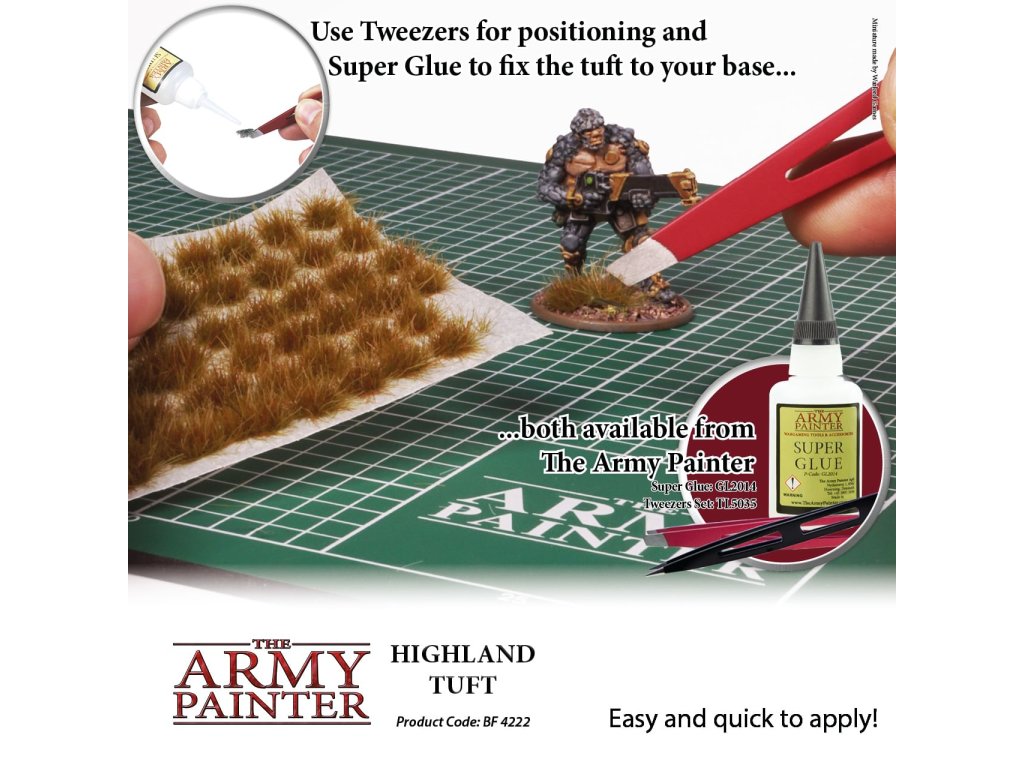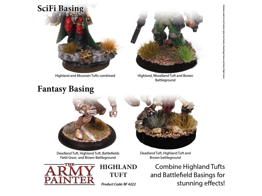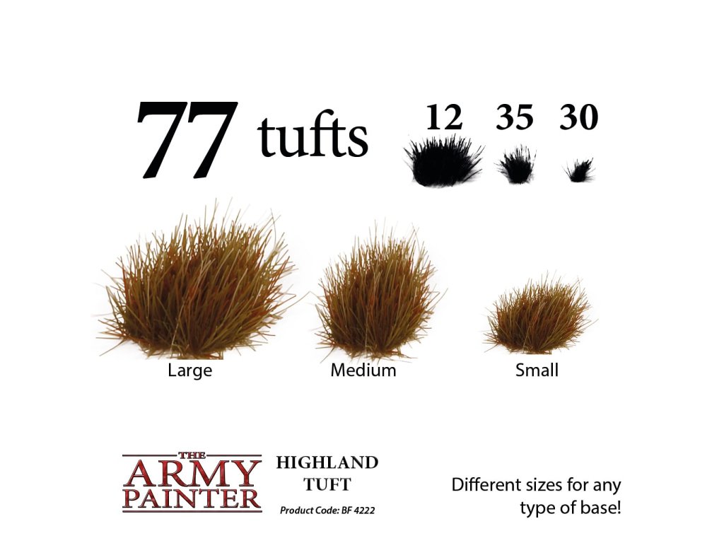Balenie Dekorácia Army Painter - Highland Tuft vám umožní vytvárať realistické podstavce modelov a miniatúr v podobe vrchoviny. Obsiahnuté sú 3 rôzne veľkosti pre každý typ podstavca. Jednoduché použitie za pomoci lepidla Super Glue.