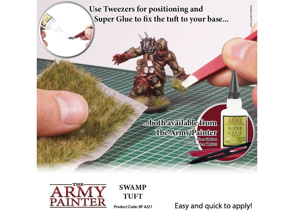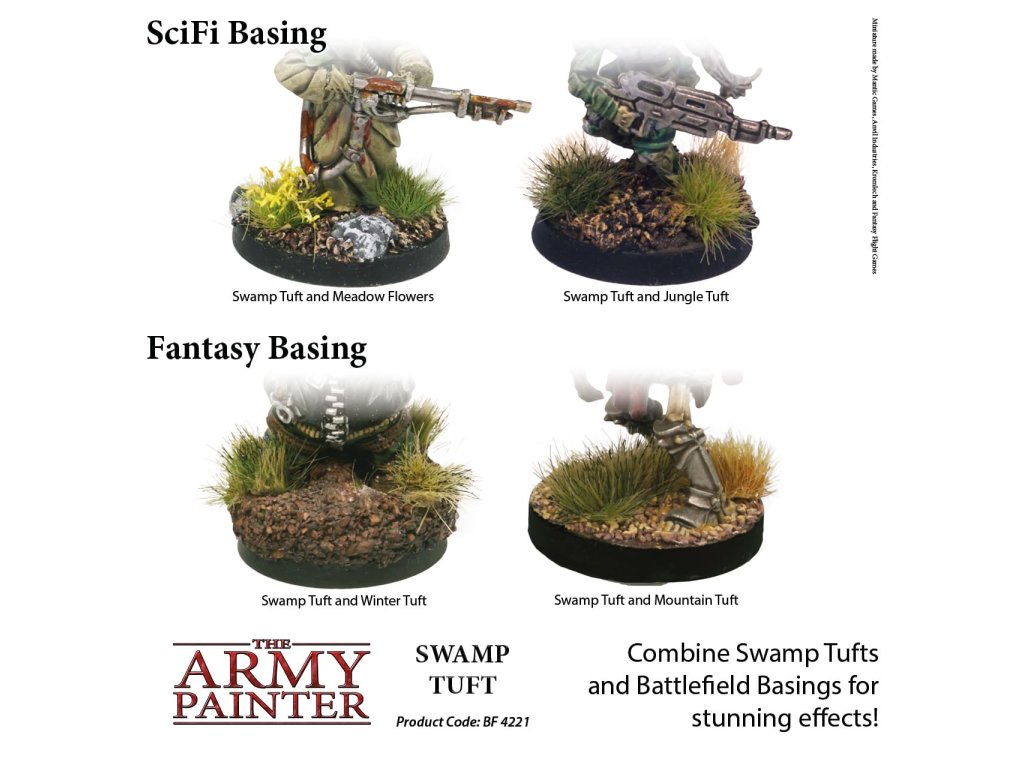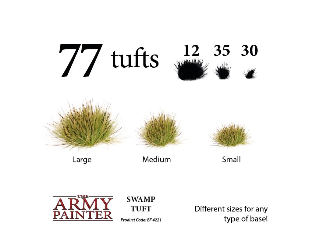 Balenie Dekorácia Army Painter - Swamp Tuft vám umožní vytvárať realistické podstavce modelov a miniatúr v podobe močiarov a močiarov. Obsiahnuté sú 3 rôzne veľkosti pre každý typ podstavca. Jednoduché použitie za pomoci lepidla Super Glue.