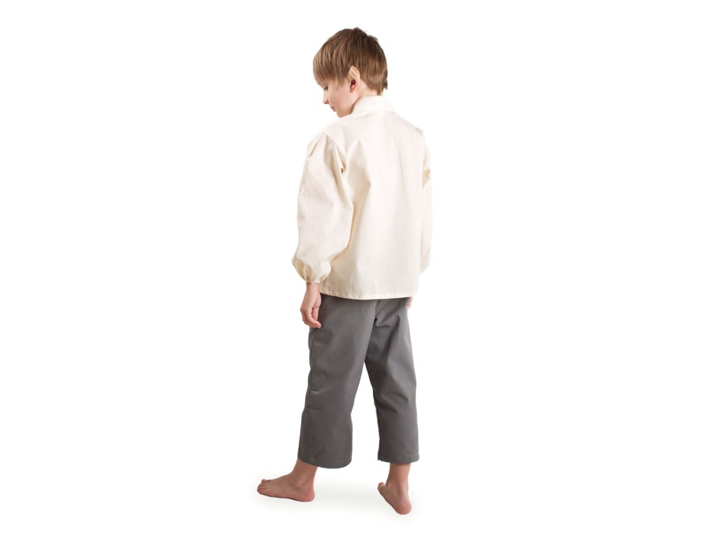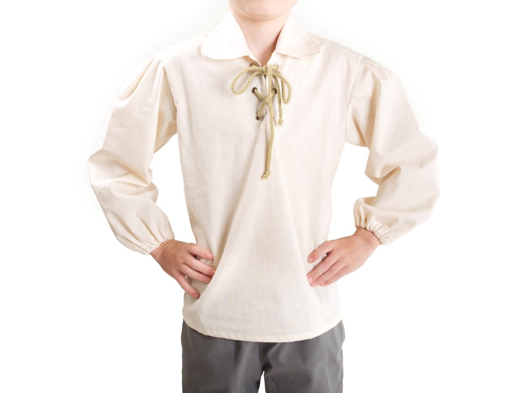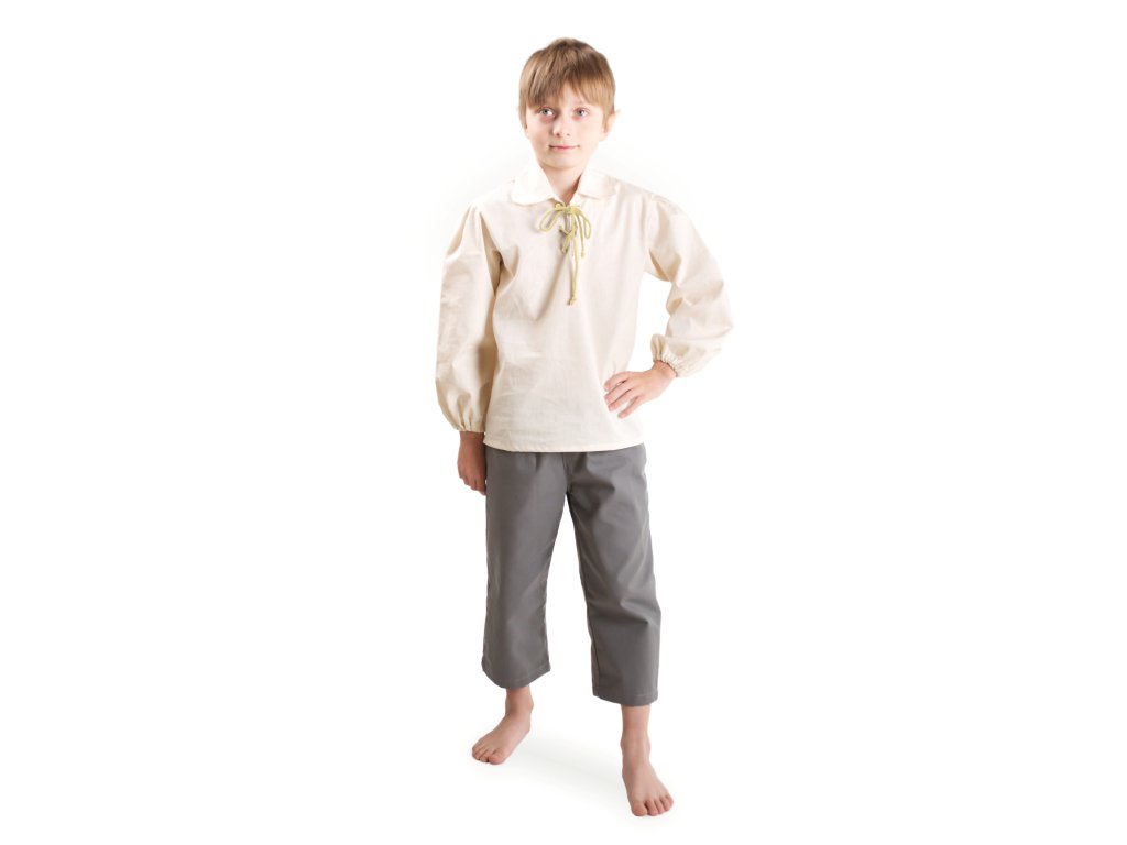Jednoduchá detská košeľa rovného strihu predstavuje čistú klasiku pre fantasy a stredoveké kostýmy. Skvele sa hodí nielen ku kostýmu hobita, ale aj pre panoše, piráta či samotného rytiera. Rukávy zakončené gumičkou zaistia, aby neskončili v polievke a zostali na mieste. Košeľa je z kvalitného bavlneného plátna prírodnej farby so šnurovaním vo výstrihu pomocou bavlnenej šnúrky béžovej (režnej) farby. Tieto prvky spoločne s golierom dávajú celej košeli rozprávkový šmrnc! Nemyslíte? Detská košeľa pre pánov chlapcov je ušitá zo 100% bavlny. Vznikla v našej dielni pod rukami našich krajčírok, a tie veľmi dobre vedia, čo našim deťom vyhovuje najviac. Prečítajte si viac o materiáli, z ktorého šijeme: popis materiálu.