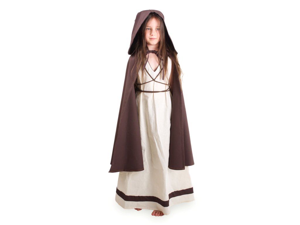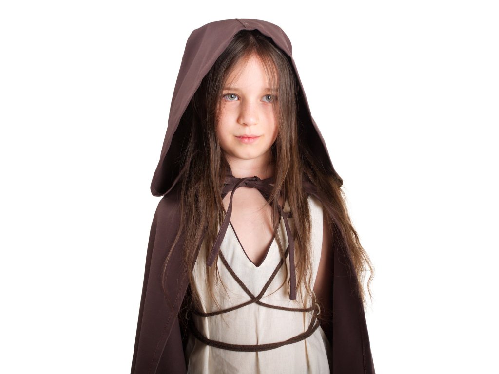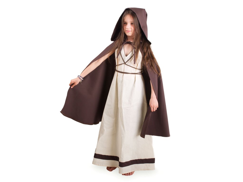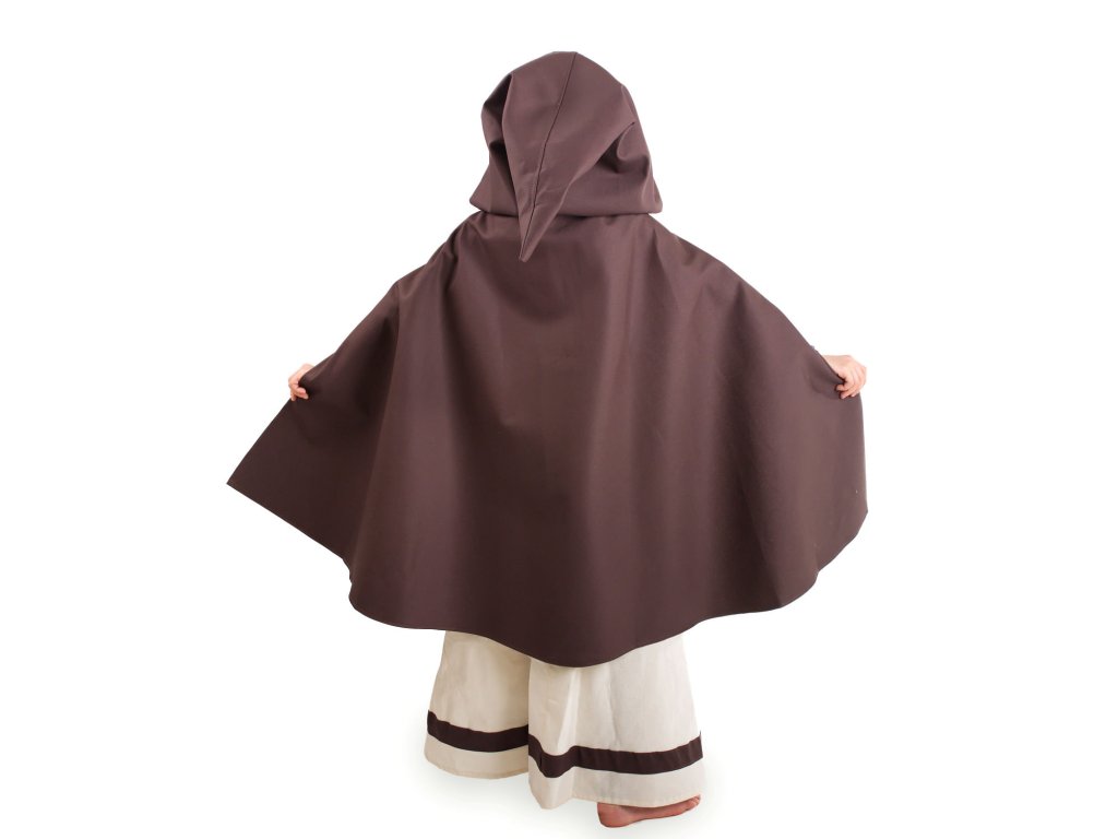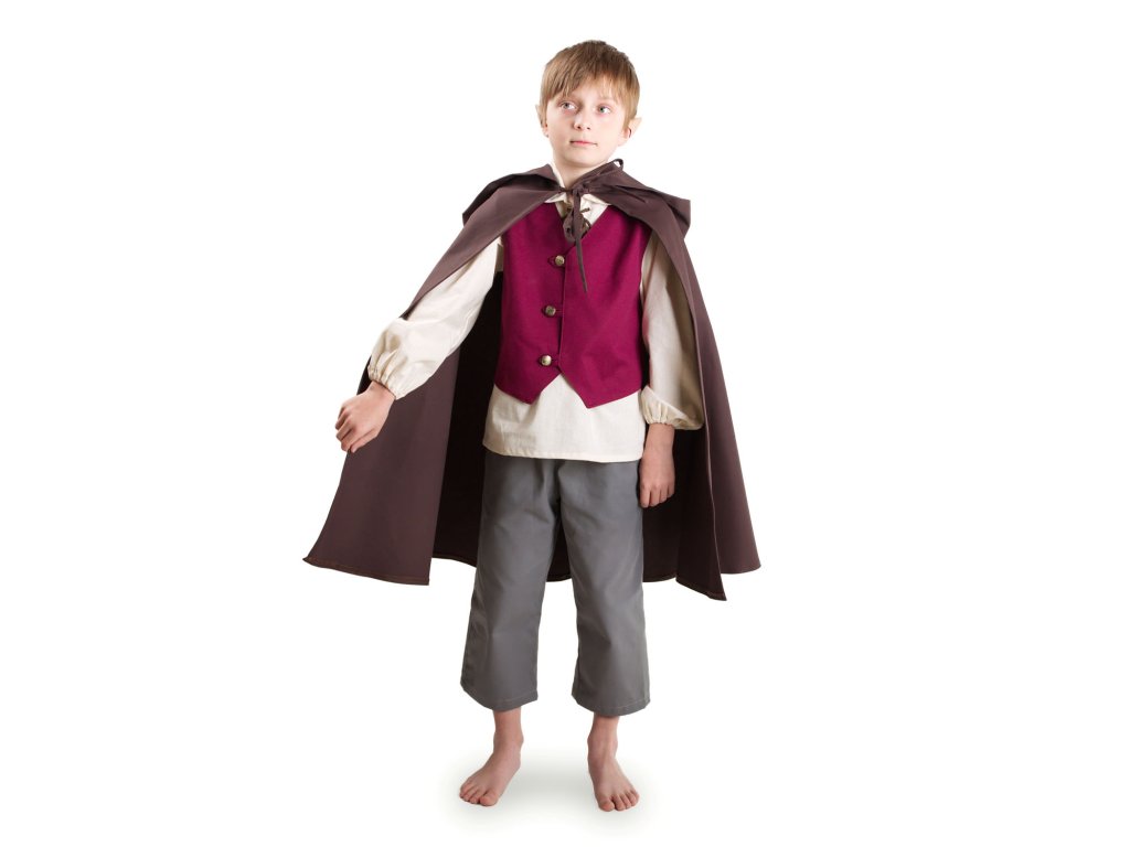 Detský plášť Hobit v hnedej farbe, z pevnej bavlnenej látky (keper) padne vášmu hobitkovi či hobitke ako uliaty. Praktická šnúrka na zaväzovanie pod krkom udrží plášť na svojom mieste. Vďaka svojej dĺžke, ktorú nosili hobiti, je praktický pri všetkých hrách či bojoch. Ani ten najmenší hobit sa nemusí báť, že by si šliapal na svoj plášť. Detský plášť Hobit sa hodí nielen k mnohým ďalším fantasy kostýmom, ale aj k historickým. Chcete rytier, panoš alebo kúzelník? Nie je problém, fantázii sa medze nekladú. Doveďte s deťmi kostým k dokonalosti a kúpte ďalšie nevyhnutné doplnky ku kostýmu. K detskému plášťu sa napríklad hodí šedé hobitie nohavice a hobitie košele, alebo dievčenské elfské šaty. Detský pláštik šijeme aj v ďalších farbách: šedý, čierny a vínový. Plášte sú v štyroch veľkostiach, dĺžka je meraná od krku na zadnom diele (bez kapucne): 122/128 - dĺžka 78 cm 134/140 - dĺžka 88 cm 146/152 - dĺžka 98 cm 158/164 - dĺžka 108 cm