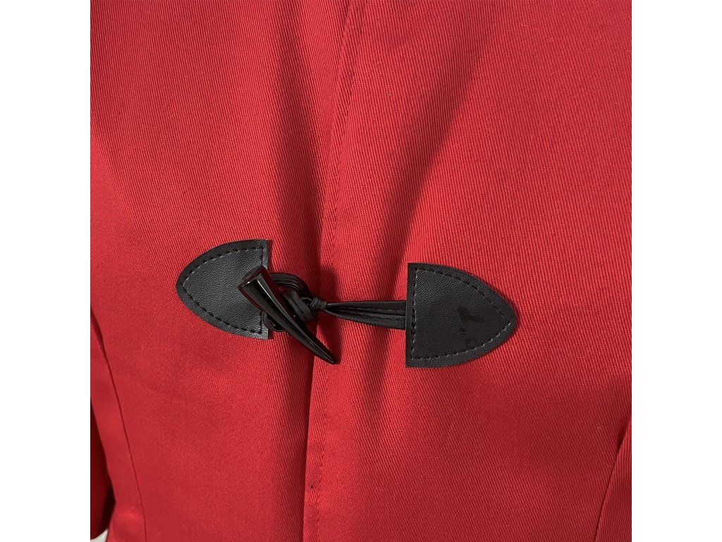 Dublet pre mešťanov – Raffael je poctivo spracovaný červený kabátec inšpirovaný dobovým odevom mestského obyvateľstva neskorého stredoveku a raného novoveku. Tento dublet vyrábame výhradne v našej dielni – každý kus od základu navrhujeme s dôrazom na detail a funkčnosť. Základom je pevný keper (plátnová bavlnená tkanina s jemnou štruktúrou), podšitý, a to pre väčšie pohodlie a lepšie padnutie. Má elegantný, ale nie prehnane okázalý strih, ktorý vyhovuje postavám mešťanov, remeselníkov, pisárov, cechových majstrov alebo postáv z bohatších vrstiev nižšej šľachty. Vďaka praktickému zapínaniu vpredu, pevnému prevedeniu a neutrálnej červenej farbe je dublet ideálny pre kombináciu s ďalšími vrstvami odevu. Hodí sa na historické slávnosti, larpové bitky, fantasy akcie, ako divadelný kostým a na ďalšie príležitosti.