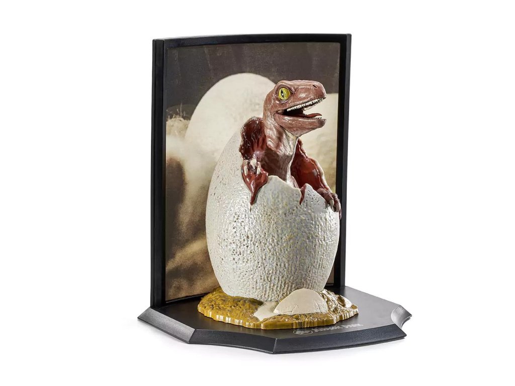 Krásná sběratelská figurka velociraptora líhnoucího se z vejce potěší milovníky filmů Jurský park. Figurka malého dinosaura se dá sejmout z podstavce a tvoří hezké diorama, které bude ozdobou vaší police, knihovny i sbírky.