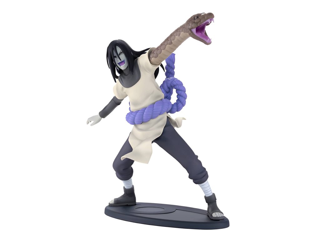 Táto figúrka Orochimara zachytáva jedného z najslávnejších Sanninov vo chvíli, keď je pripravený udrieť s nebezpečnou presnosťou. Je oblečený vo svojom ikonickom odeve a jeho paže sa menia na jedovatého hada, pripraveného zaútočiť. Každý detail je spracovaný s mimoriadnou starostlivosťou – od textúry vlasov, pleti až po záhyby odevu a výraz v jeho tvári. Vyrobená je z kvalitného PVC a je dodávaná v elegantnej window box krabičke, ktorá umožňuje figúrku pohodlne vystaviť. Rozmery figúrky sú 1:10 (17 cm vysoká).