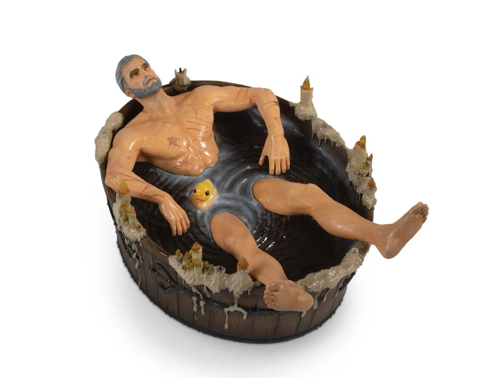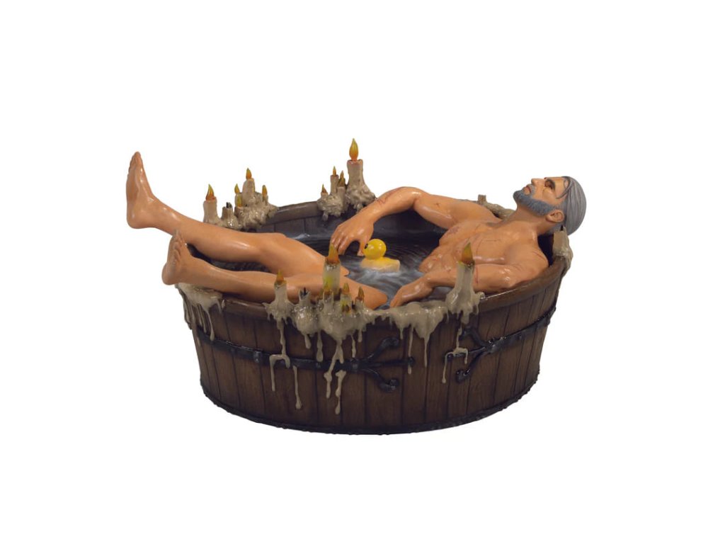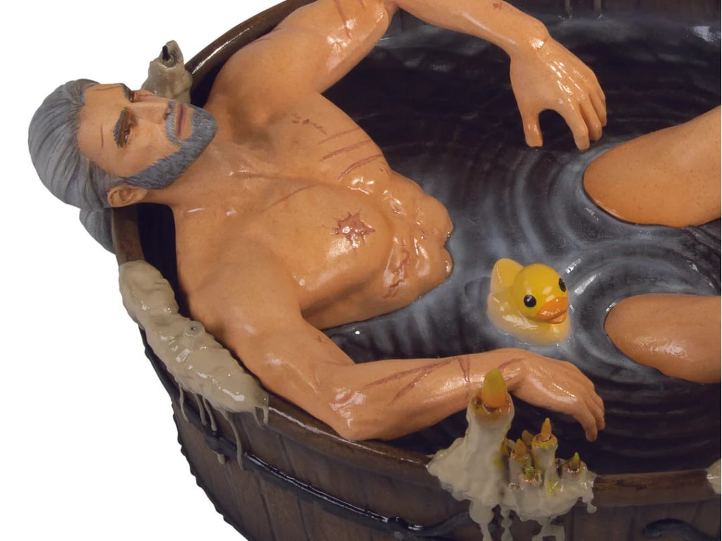 Zberateľská figúrka zaklínača Geralta z Rivie relaxujúceho po náročných dobrodružstvách v kadi s kačičkou je tým správnym prírastkom do zbierky každého fanúšika videohry Witcher 3: Divoký hon!