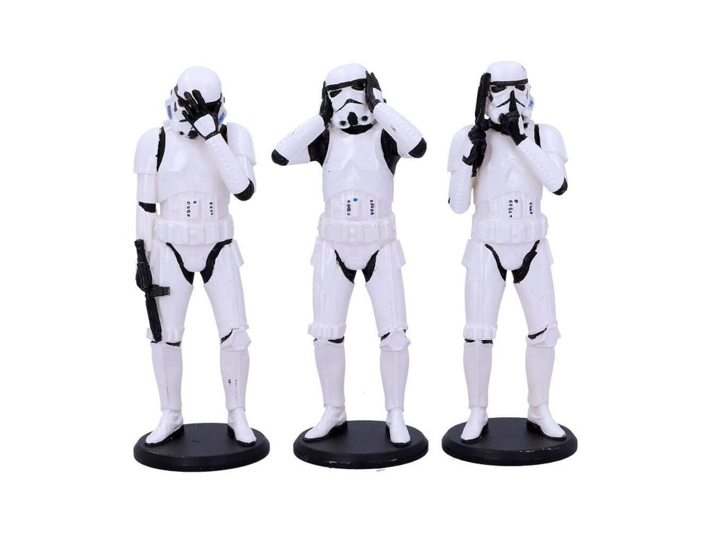 Figúrky trojice múdrych Stormtrooperov, ktorí nevidia, nepočujú a nehovoria o tom, čo práve Impérium pácha, sú ručne maľované a potešia fanúšikov Star Wars - Hviezdnych vojen.