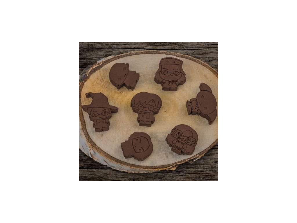 Forma na čokoládu a ľad vám to umožní. V roztomilom japonskom kawaii dizajne máte teraz k dispozícii 12 postáv z príbehov J. K. Rowlingovej: Harry Potter, Sirius Black, Dumbledore, Hermiona Grangerová, Voldemort, Hagrid, Luna Lovecraftová, Draco Malfoy, domáci škriatok Dobby, Ron Weasley, profesorka McGonagallová a profesor Snape.