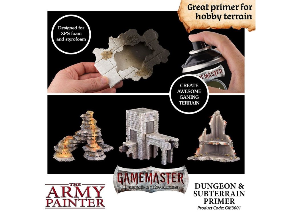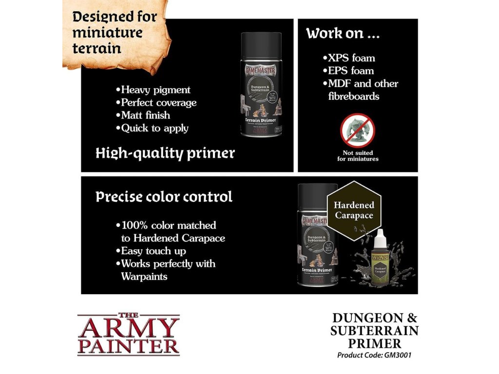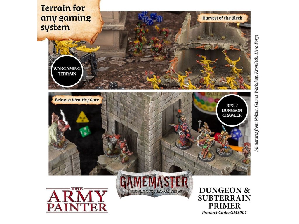 GameMaster Terrain Primer: Dungeon & Subterrain vytvorí dokonalý základ pre terény a scenérie. Kvalitný matný primer na vodnej báze je netoxický, bez zápachu a nebude korodovať materiál (bez ohľadu, či používate penu XPS, polystyrén alebo MDF dosky). Objem 300 ml. 100% kompatibilný s Hardened Carapace Warpaint.