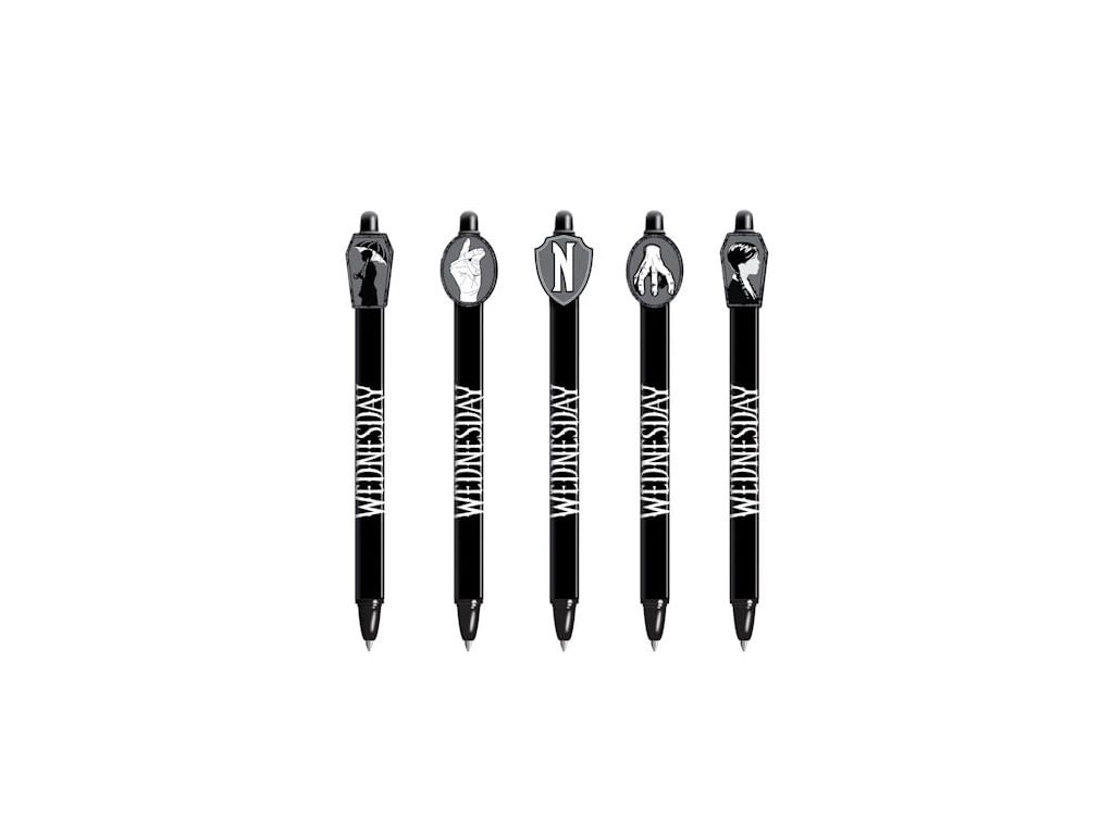 S týmto štýlovým gumovacím perom s motívmi od seriálu Wednesday získa tvoj peračník úplne nový rozmer! Bude temný a elegantný. Či už si do denníka zapisuješ podivné myšlienky, plánuješ pomstu svojim spolužiakom alebo len potrebuješ strašne dobré písacie potreby do školy, toto pero ťa rozhodne nesklame. Pero píše modrým gélovým atramentom, ktorý môžeš kedykoľvek vymazať pomocou gumovacej koncovky. Zmizne ako nič, už žiadne škrtanie, žiadne chyby! Pero má 5 rôznych designov, každý s vlastným temným kúzlom. Ty dostaneš náhodne vybraný kus. Pretože prekvapenie, sú najlepšie.
