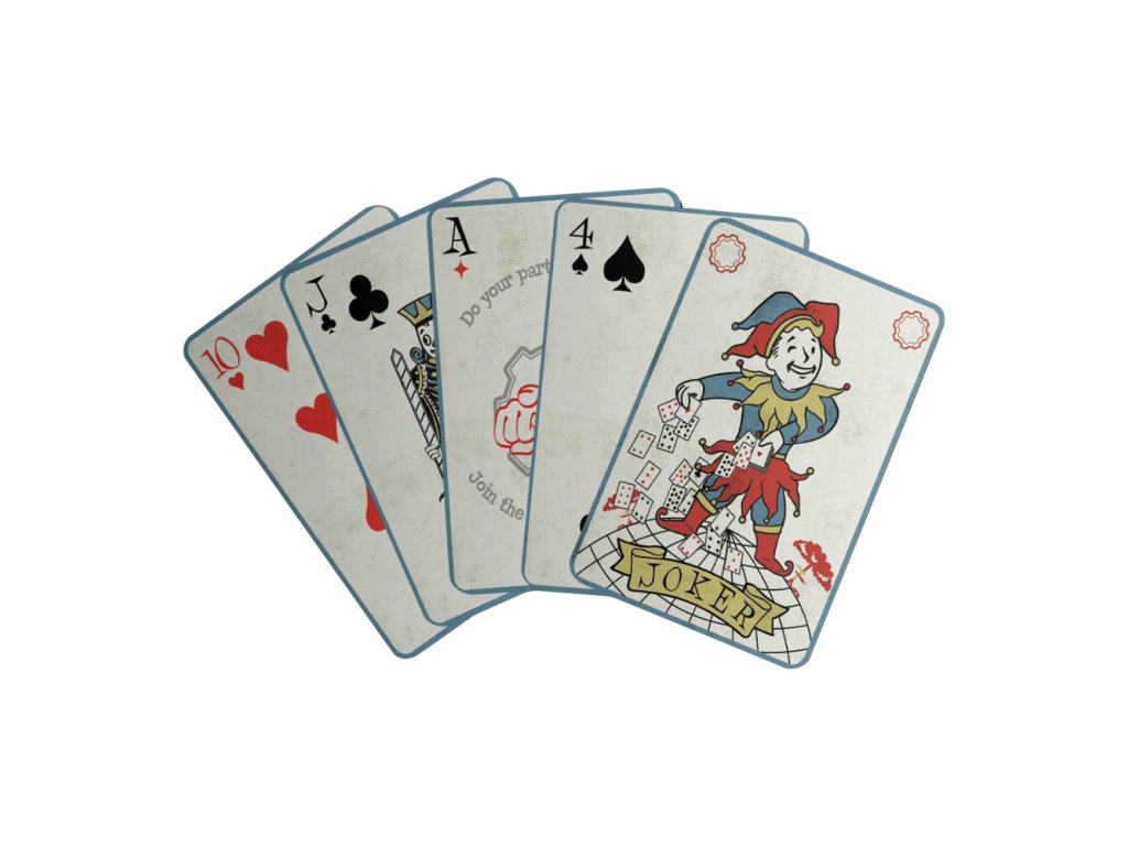 Dopraj si koniec sveta s trochou zábavy! Spoločnosť Vault-Tec pre teba pripravila špeciálny balíček hracích kariet, ktoré majú posilniť priateľstvo, vybrúsiť stratégiu a urobiť tvoj čas strávený vo Vaulte ešte zábavnejším! Na rubovej strane je ikonické logo Vault-Tec a každá farba obsahuje jedinečne vytvorené eso Vault Boy spolu s kartami Chlapec, Dáma a Kráľ inšpirovanými hrou Fallout. Dva žolíky sú tiež navrhnuté v štýle Vault Boya, čo balíčku dodáva prvotriedny vzhľad.