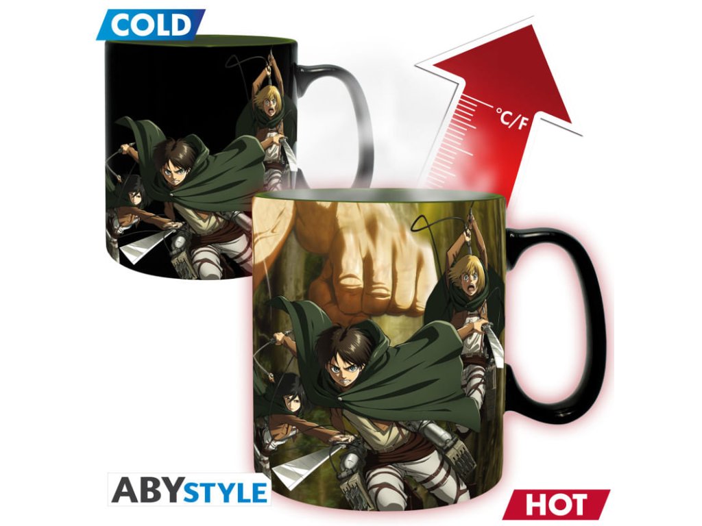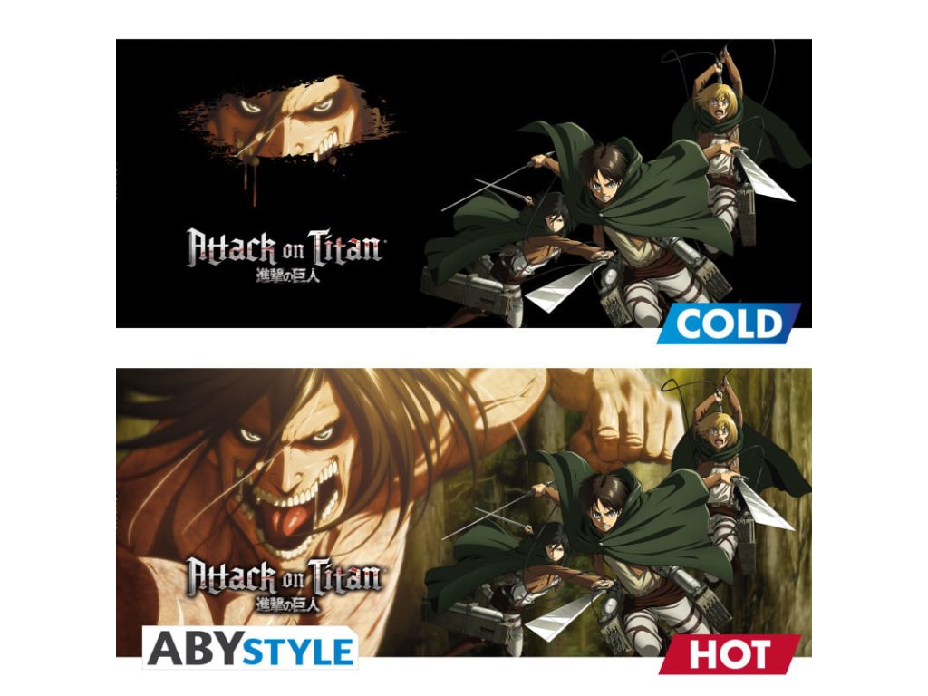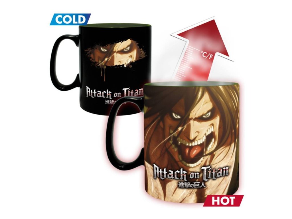 Hrnček Attack on Titan, meniace sa patrí medzi tematické produkty z kategórie Hrnčeky, ktoré sú určené ako produkt pre fanúšikov aj ako darček pre fanúšika, ktorý ocení originálny nápad a jasné tematické zameranie.