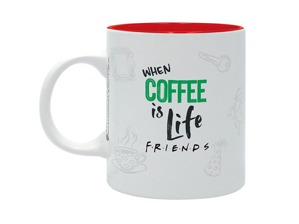 Sadnite si pohodne na gauč a vychutnajte si svoju obľúbenú kávu v hrnčeku s logom kaviarne Central Perk a ikonickými obrázkami napr. husi a kurčaťa, gauče alebo moriaka s okuliarmi a čiapkou z obľúbeného amerického sitcomu Priatelia (Friends). Hrnček je vhodný do mikrovlnky a umývačky riadu.